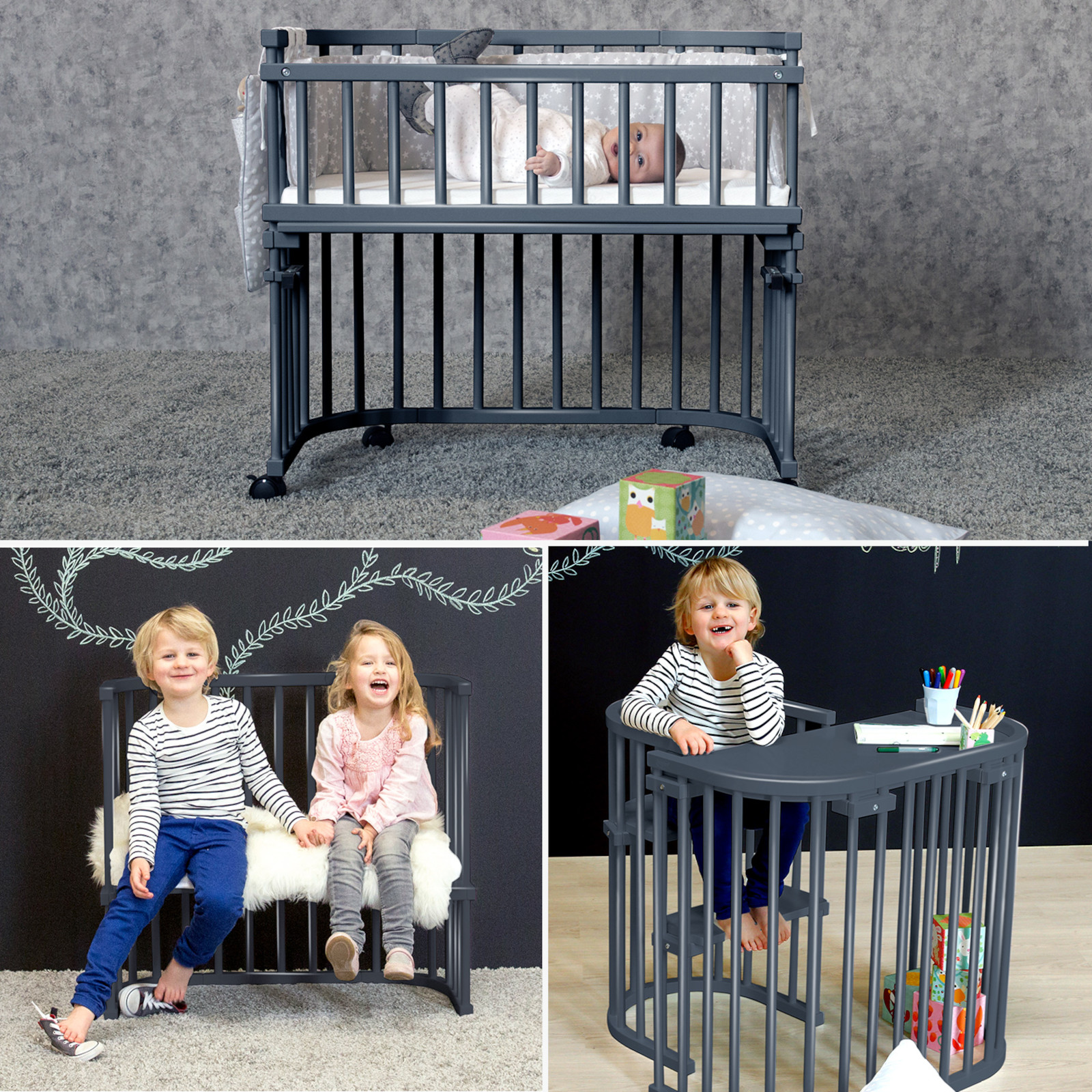 LANGLEBIG & VIELSEITIG VERWANDELBAR – babybay wächst mit: Aus dem Beistellbett machen Sie im Handumdrehen eine Sitzbank oder einen Spieltisch und mit optionalem Zubehör einen Stubenwagen oder sogar einen Kinderstuhl