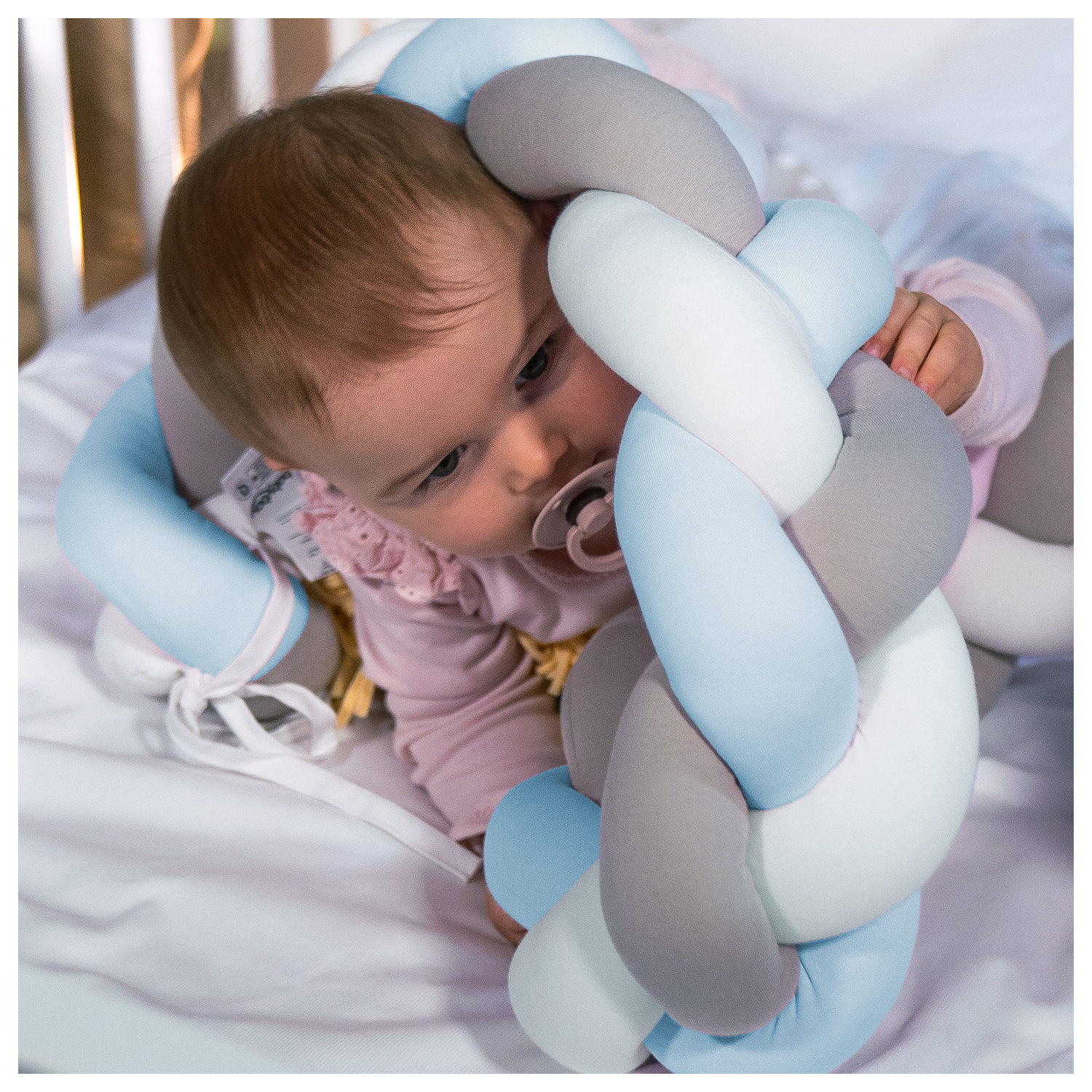 1x babybay Nestchenschlange für Kinderbett geflochten weiß/Beige/aqua