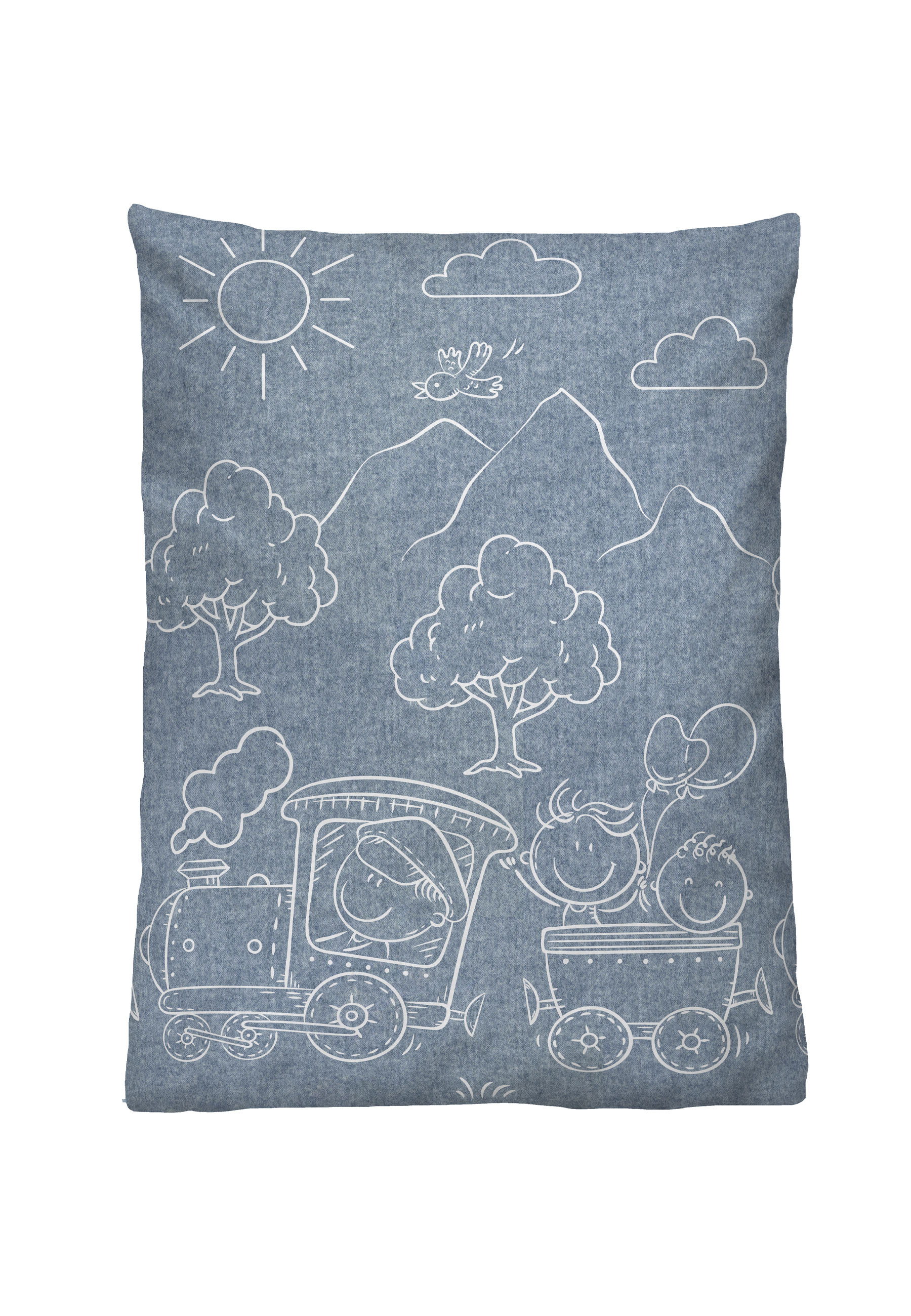 Eigenschaften "Biberna Melange Flanell-Bettwäsche Lokomotive, Größe 100x135 cm, blau"