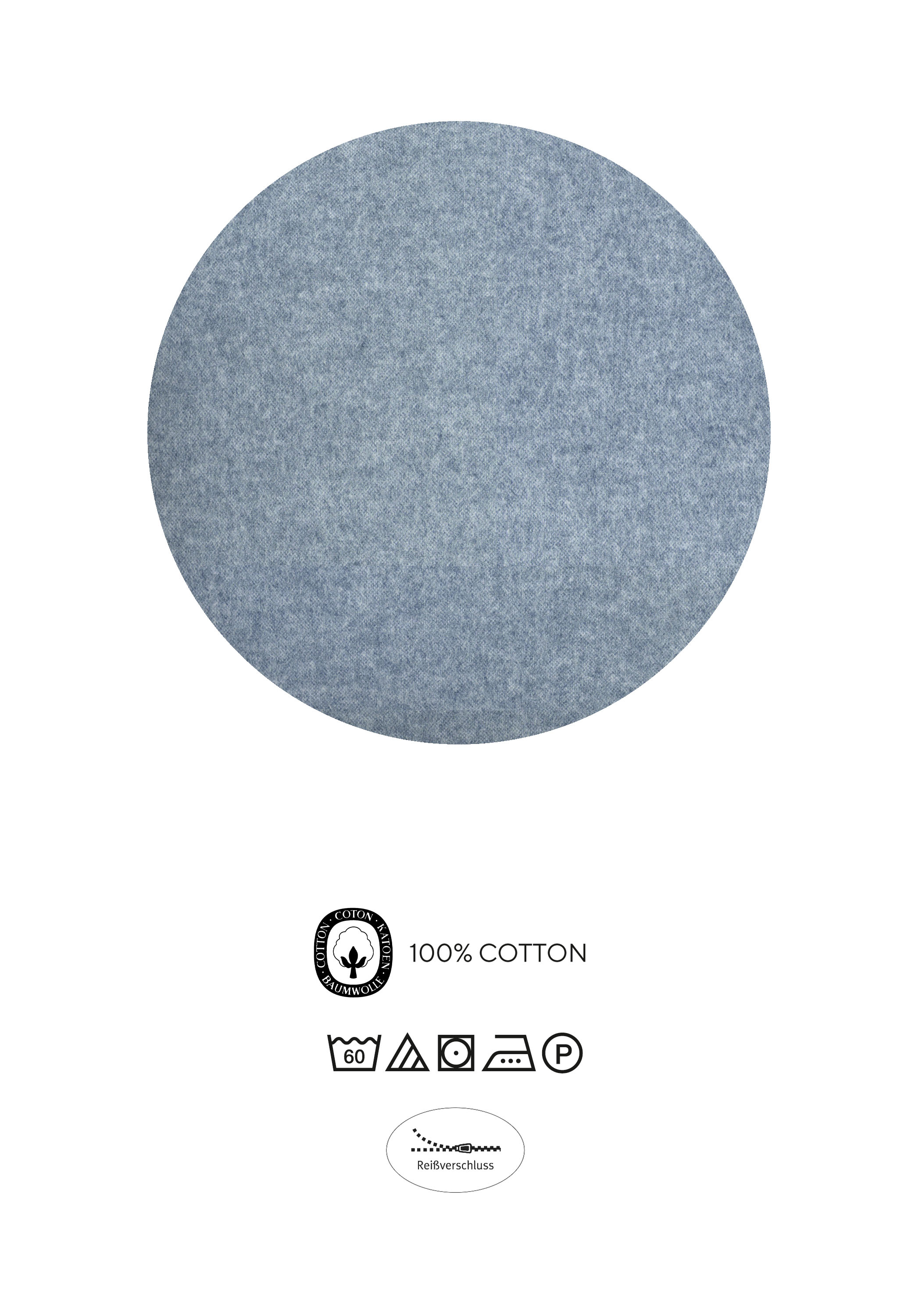 Die Bettwäsche besteht aus 100% reiner Baumwolle und bleibt auch nach vielen Wäschen perfekt in Form. In einem beruhigenden, neutralen Blauton gehalten, strahlt sie Ruhe und Geborgenheit aus.