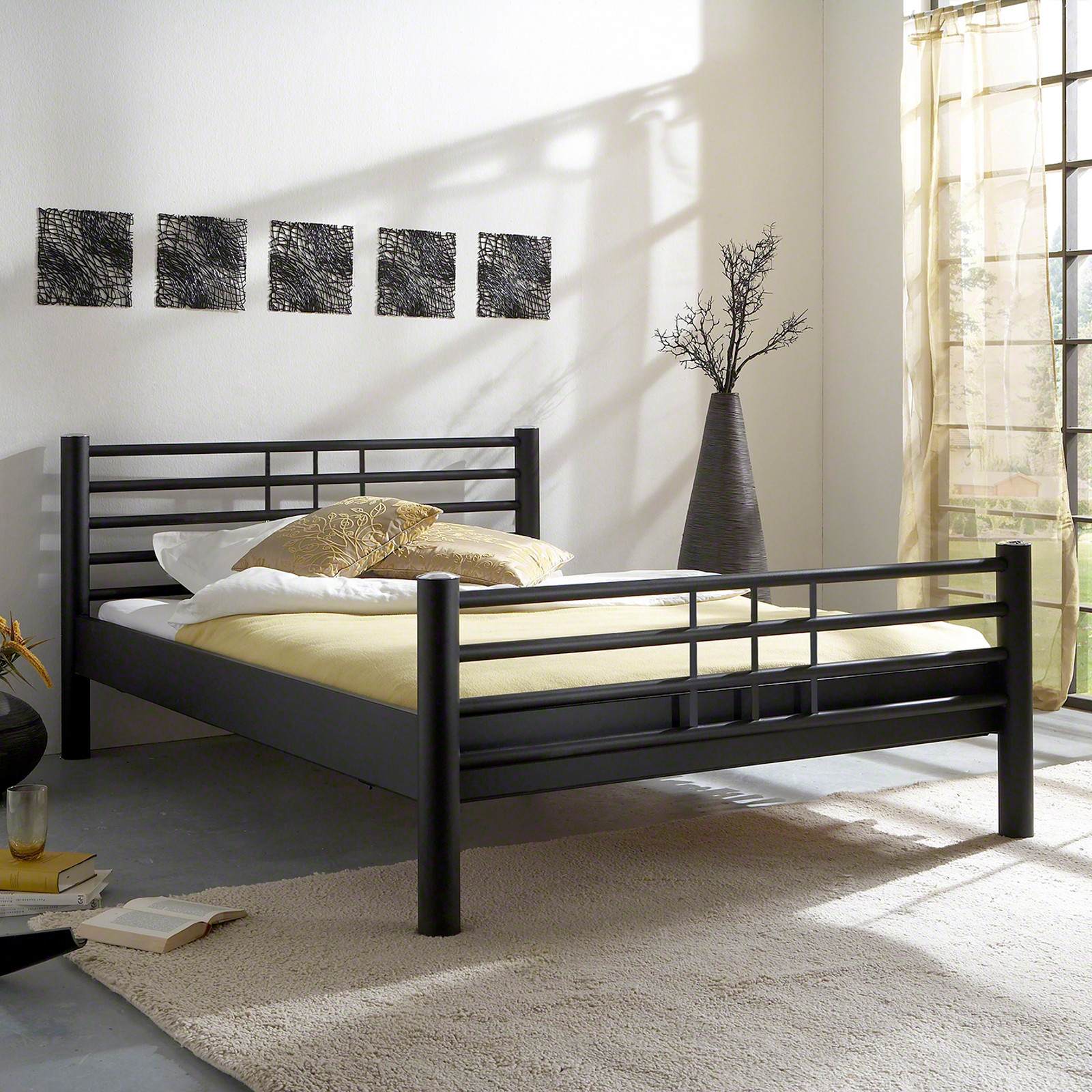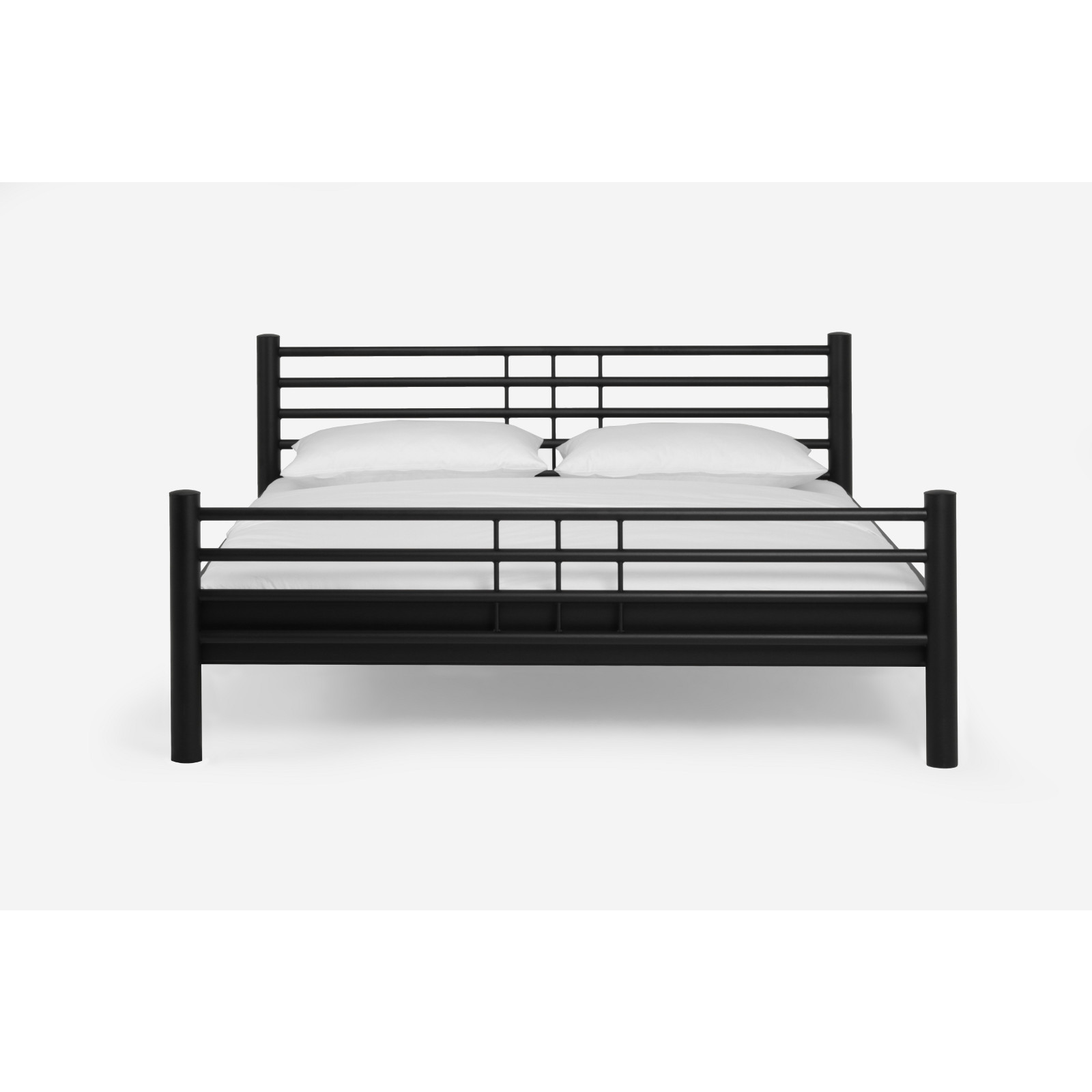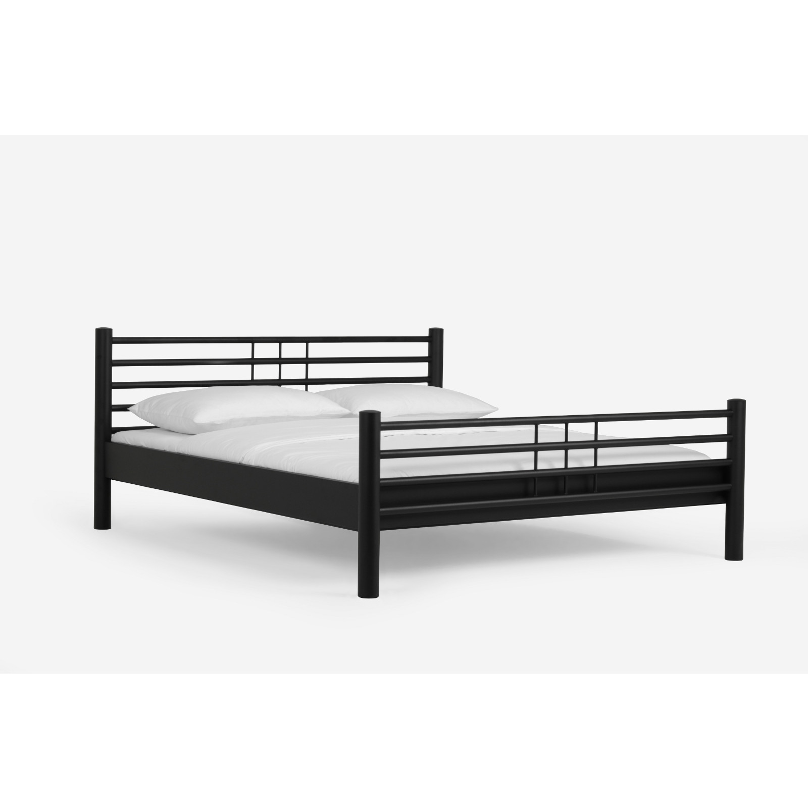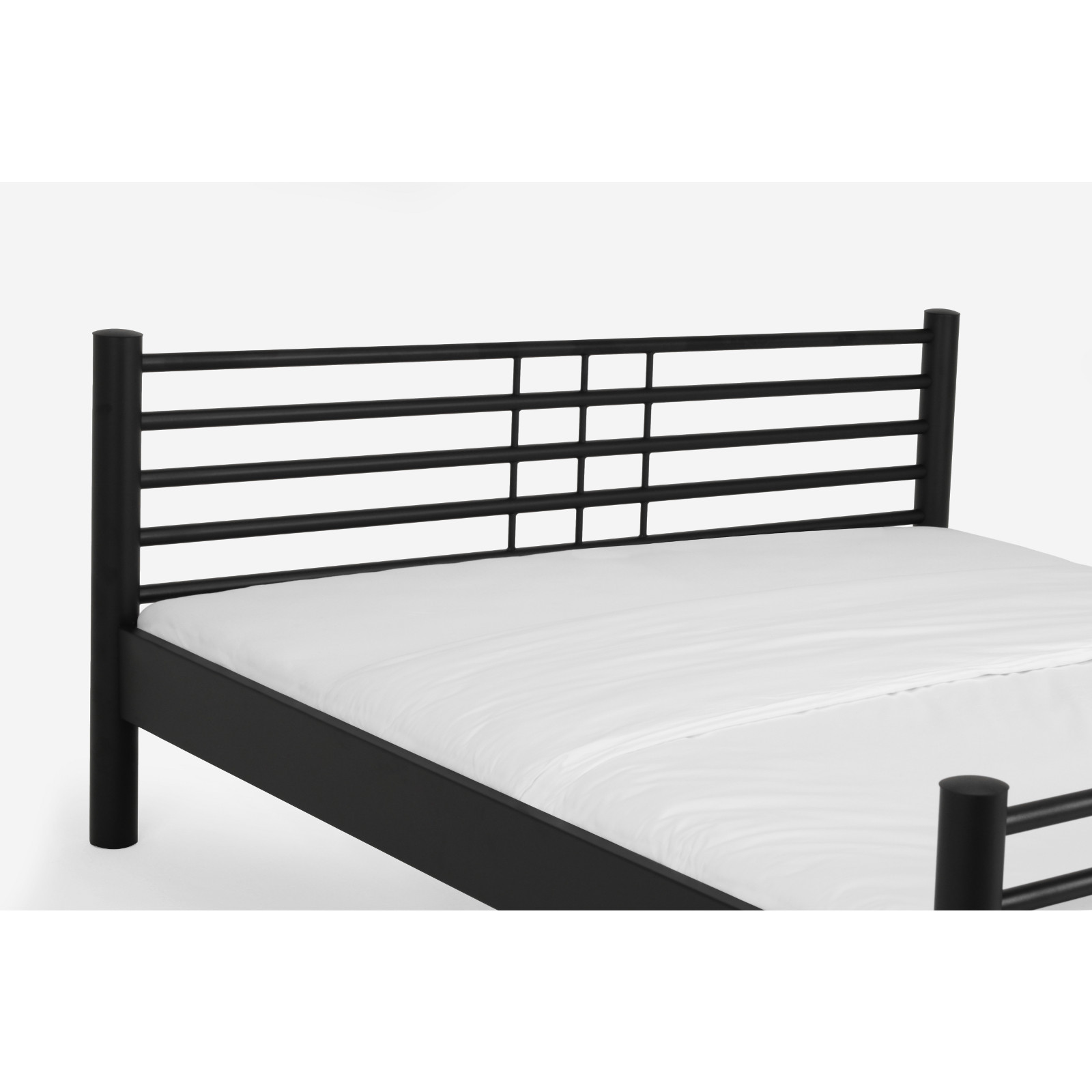 Stabiler Metallbettrahmen mit Kopf- und Fußteil.