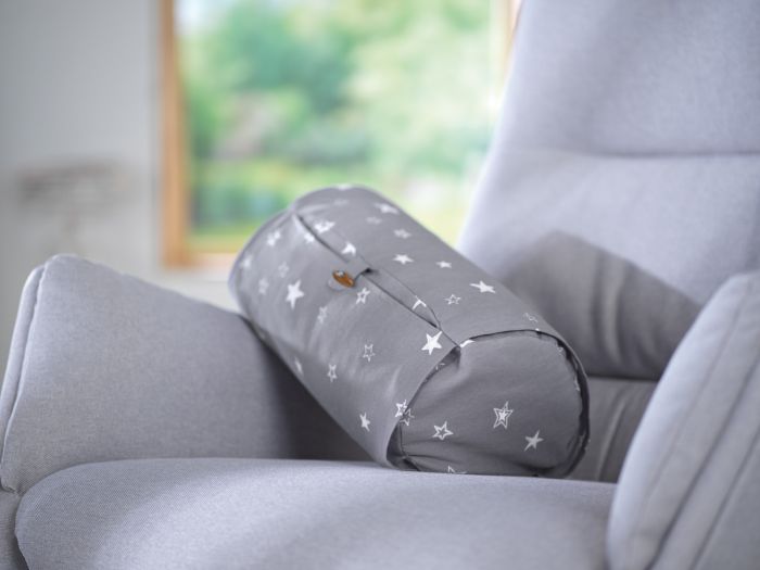 Um die kleinen, praktischen Stillrollen weicher und bauschiger zu machen, werden zu den Mikroperlen noch hochwertige Schaumstoffsticks hinzugefüllt. Im Zusammenspiel entsteht eine einzigartige, optimal haltgebende Kombination aus Weichheit und Anpassungsfähigkeit.