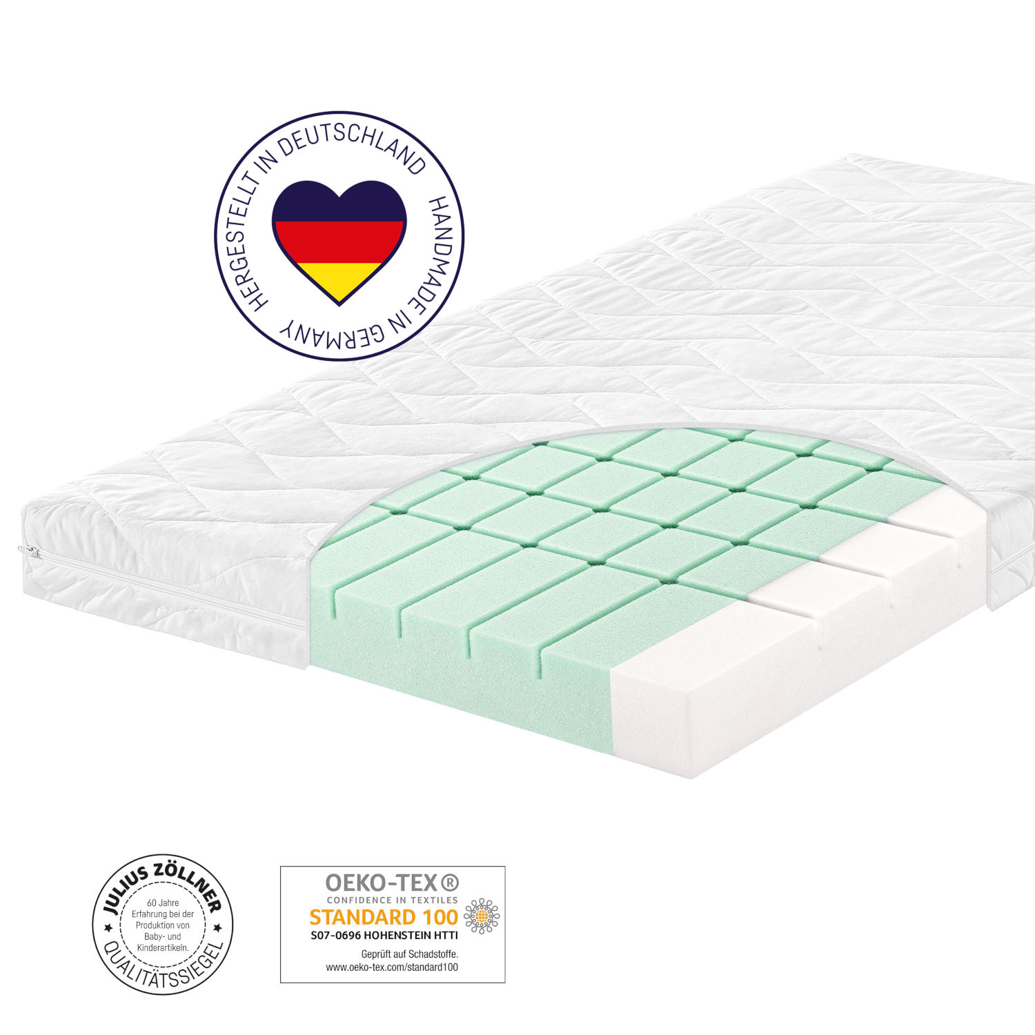 Alle Matratzen von Zöllner werden in Deutschland hergestellt und alle Kerne sind schadstoffgeprüft.