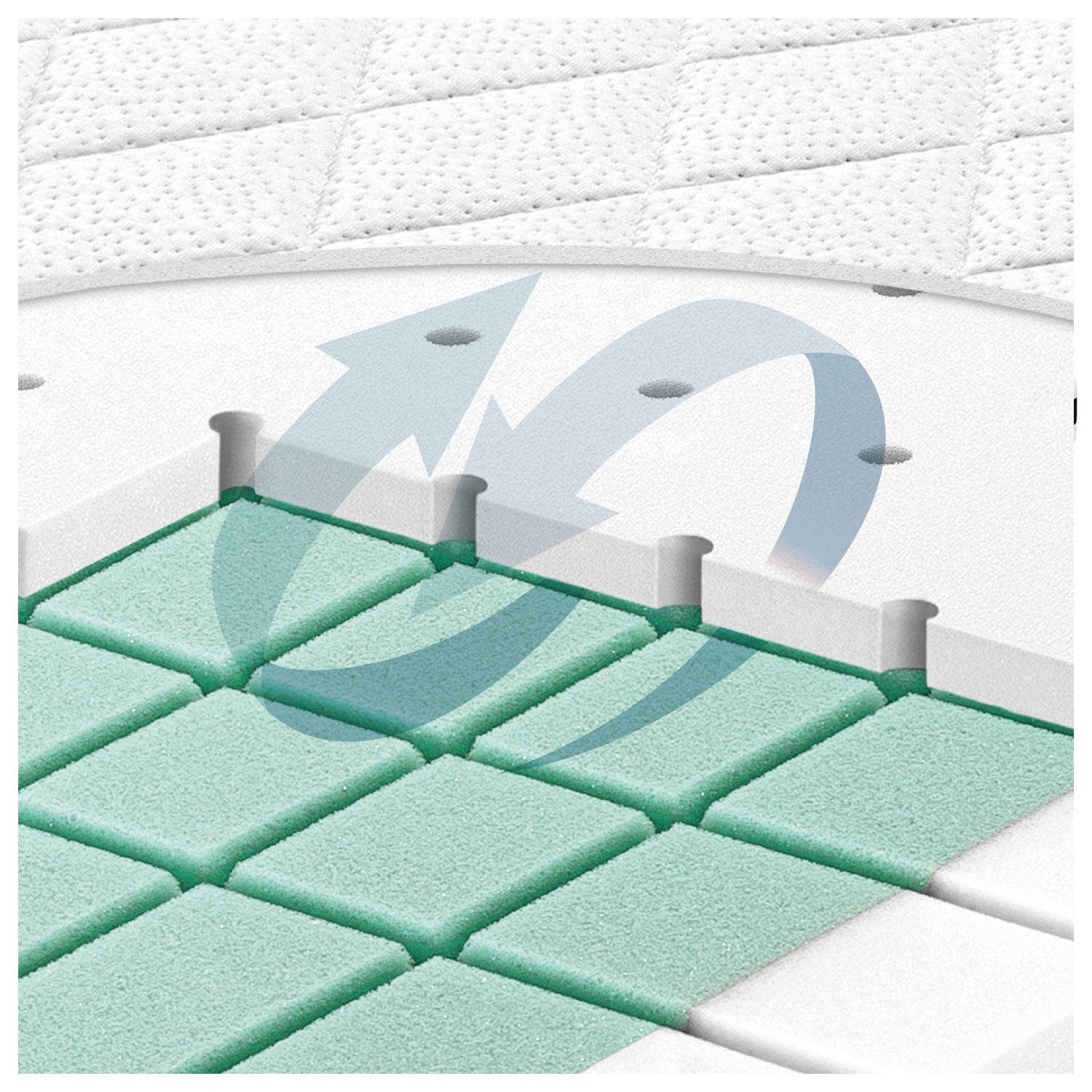 Premium 2-Schicht-Prinzip: Kaltschaum und Polyurethan-Markenschaum mit Ventilationskanälen