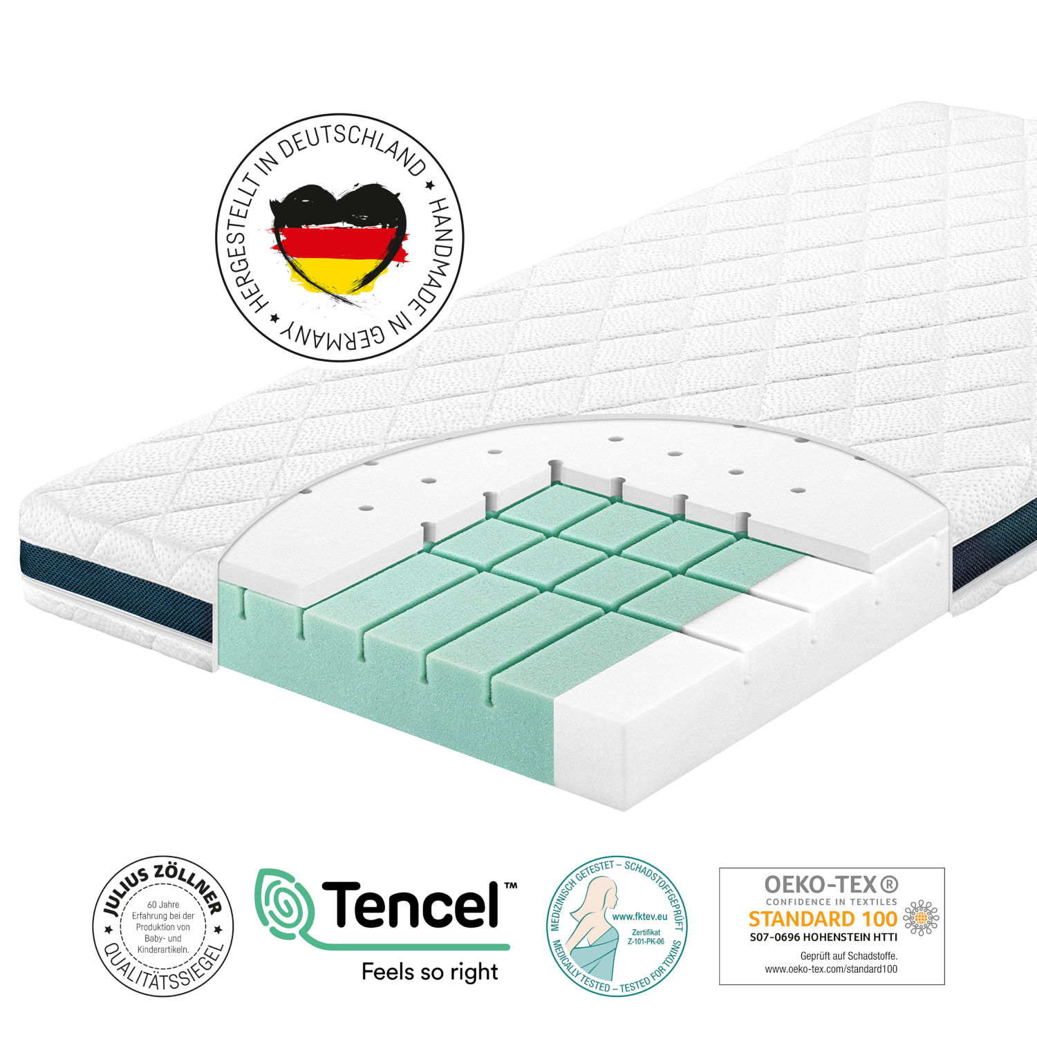 Alle Matratzen von Zöllner werden in Deutschland hergestellt und alle Kerne sind schadstoffgeprüft.