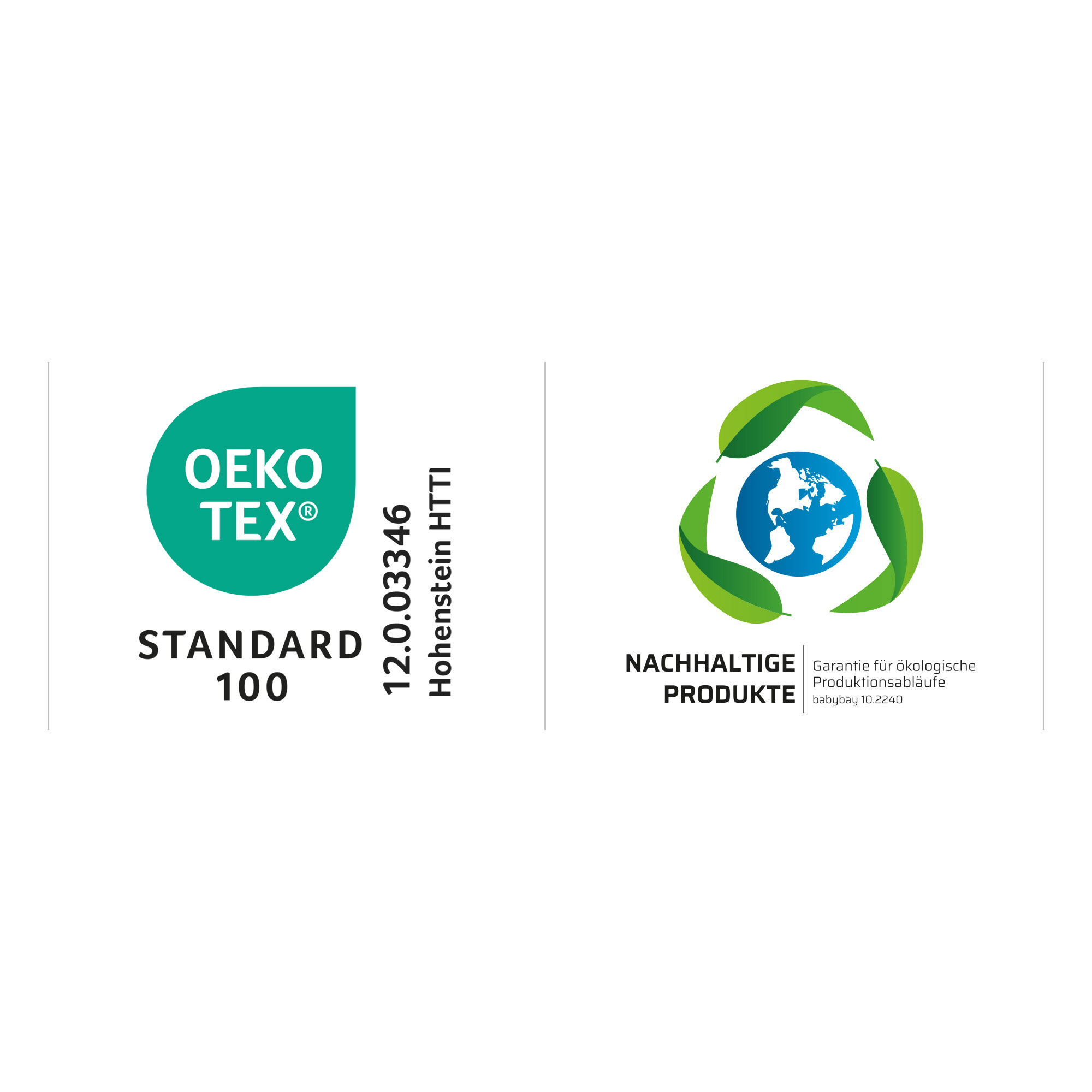 - Alle verwendeten Materialien sind schadstoffgeprüft und ausgezeichnet mit dem Zertifikat „Textiles Vertrauen“ nach Ökotex-Standard 100 Klasse 1 für Babys (12.0.03346)