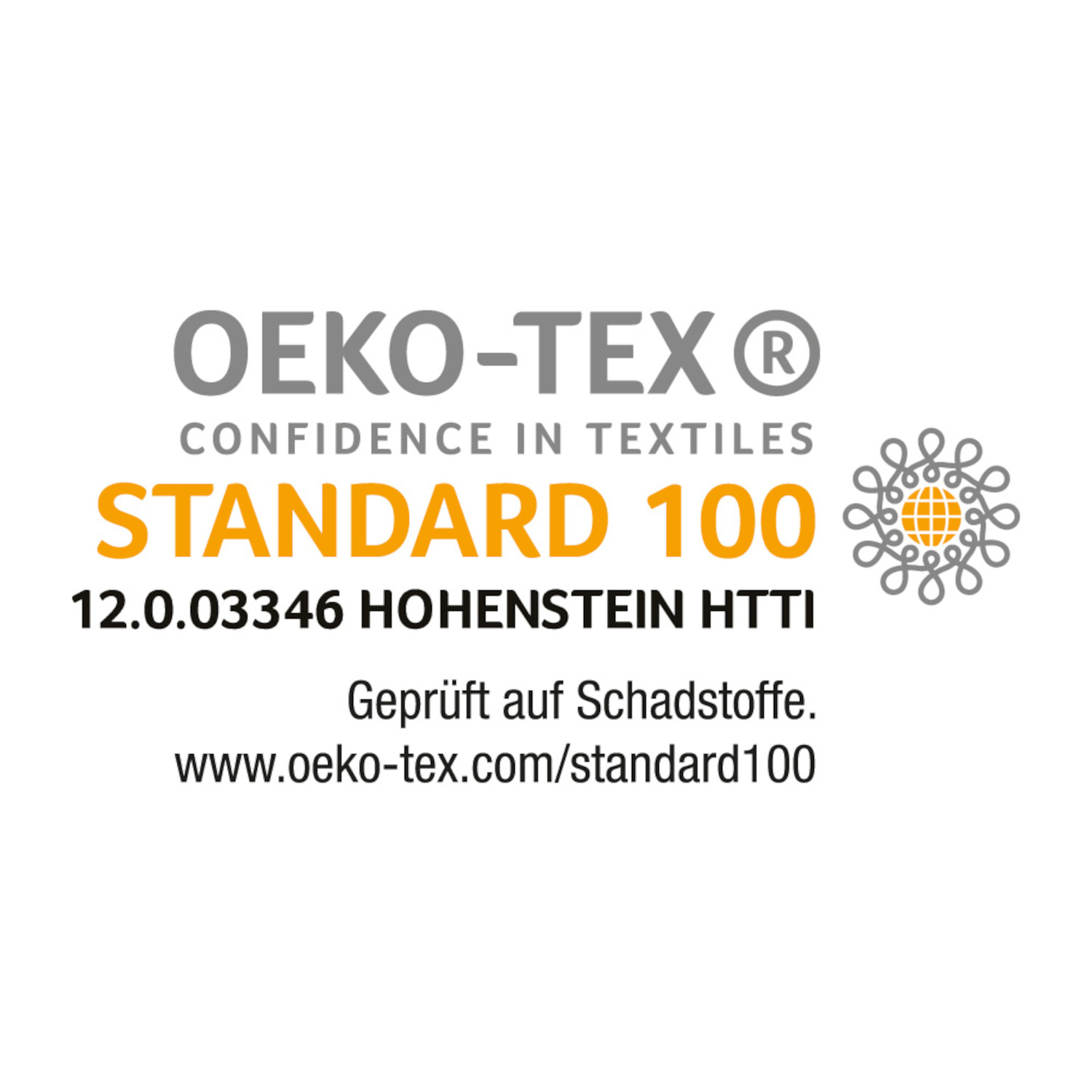 Schadstoffgeprüft und zertifiziert nach „Standard 100 by OEKO-TEX® Confidence in Textiles“, Produktklasse 1 für Babys (12.0.03346).