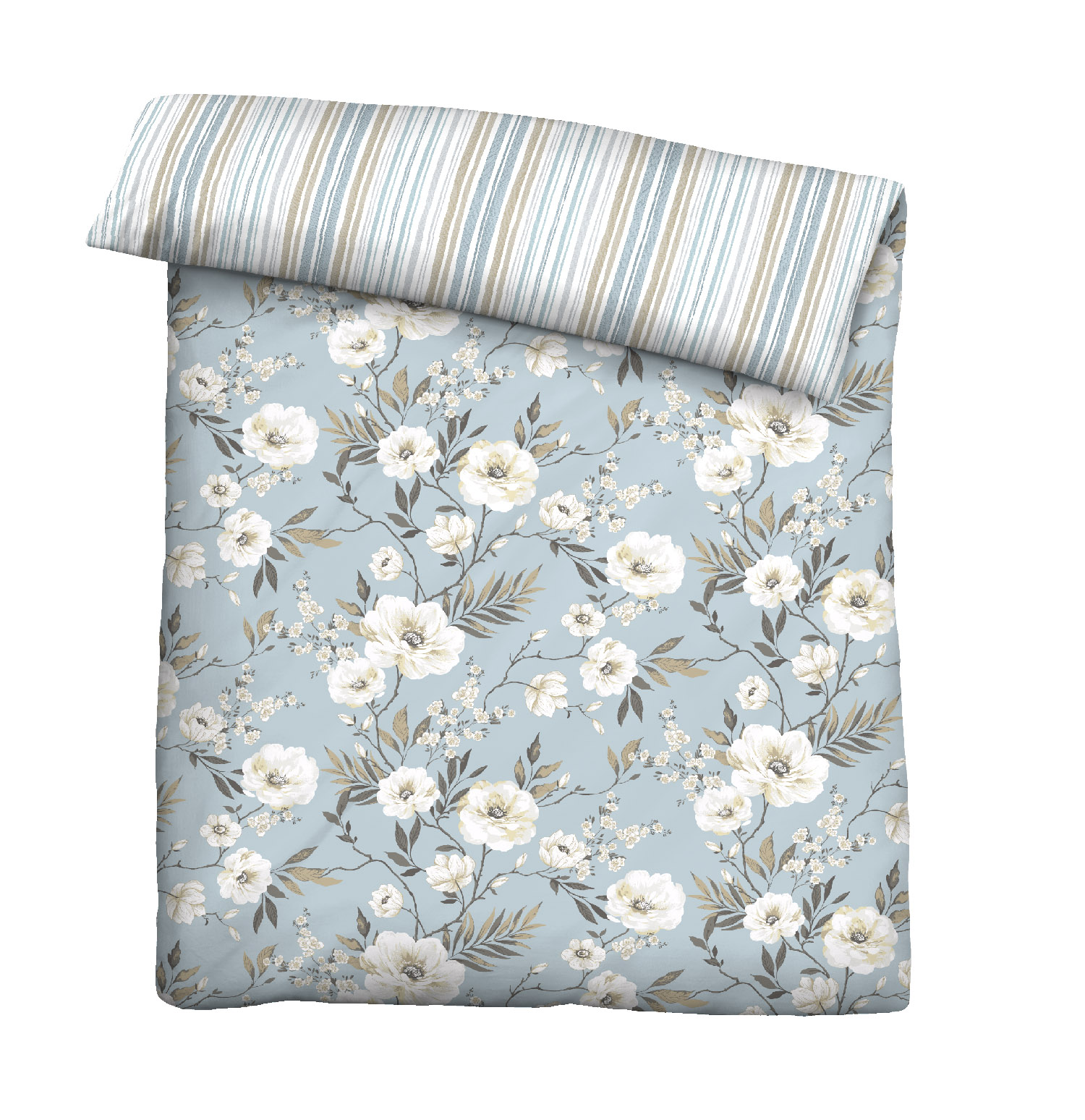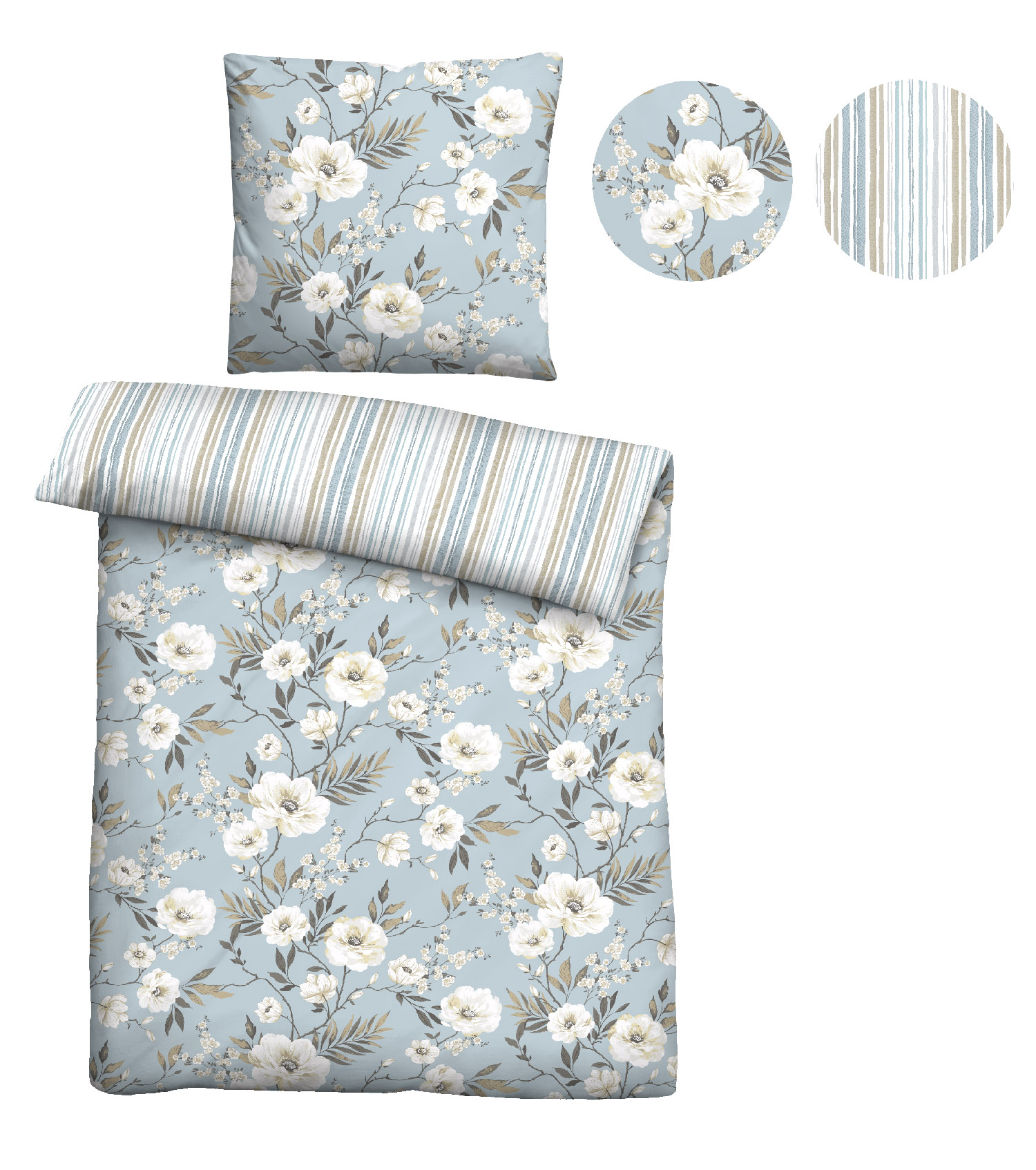 Eigenschaften "Biberna Baumwoll-Single-Jersey Bettwäsche Blumen und Streifen, Größe 135x200 cm, blau"