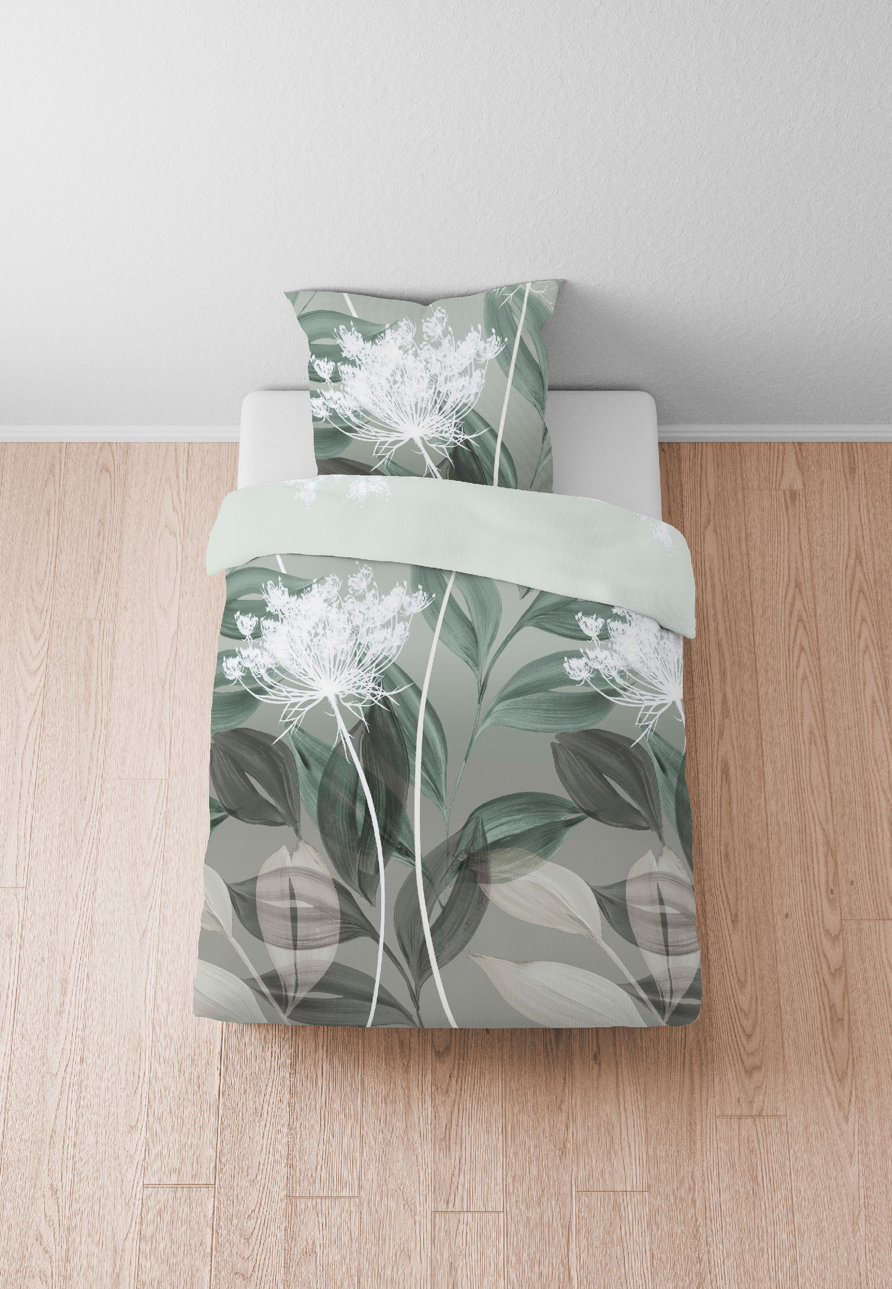 Diese tolle florale Garnitur von Biberna aus Feinbiber verleiht deinem Schlafzimmer durch ihre zarte Blätterranke eine natürliche, elegante Note und erschafft durch die Farbgebung in Fichte eine beruhigende und harmonische Atmosphäre.