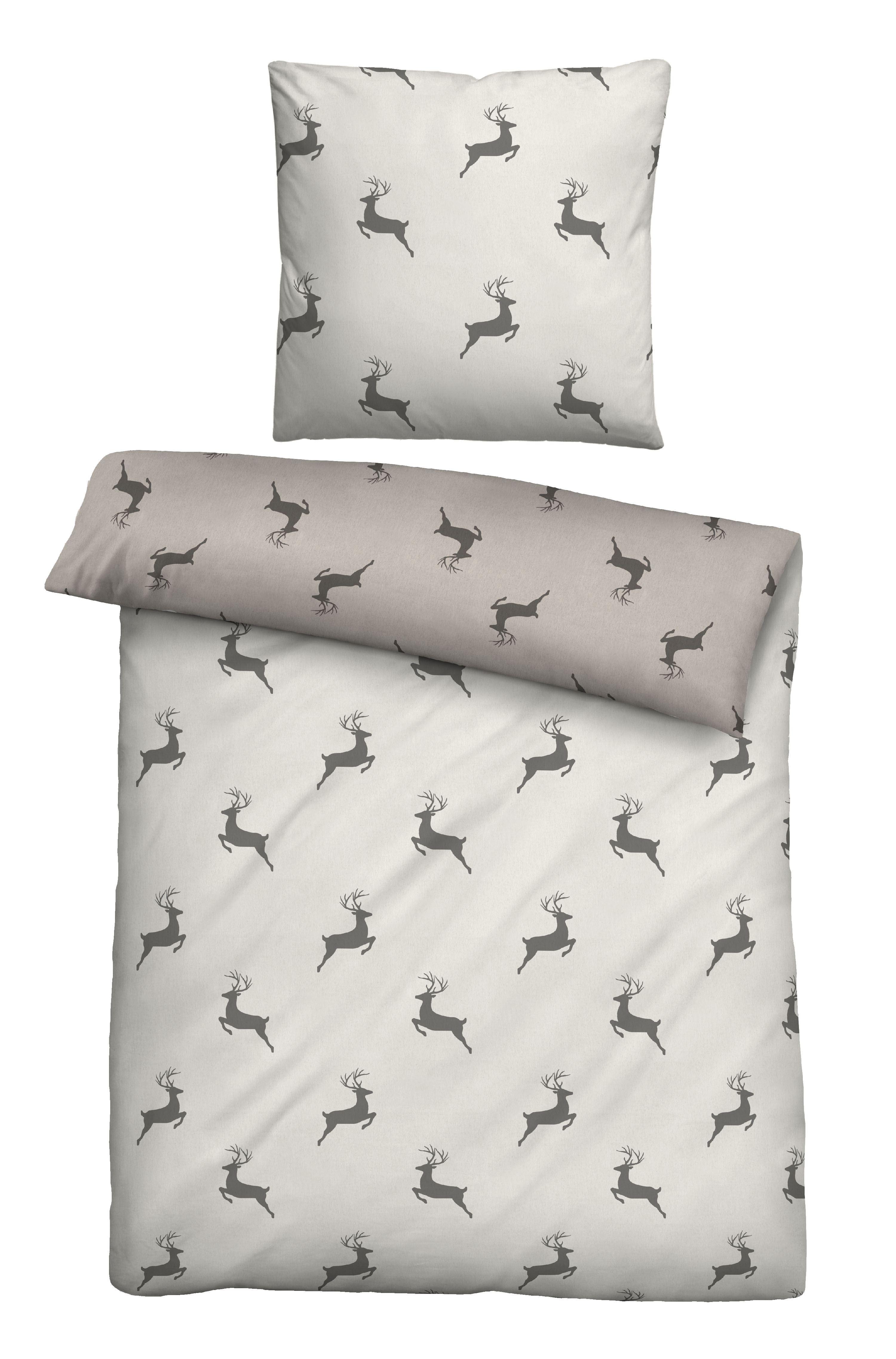 Produktinformationen "Biberna Melange-Flanell Bettwäsche Hirsche klein, Größe 1x 135x200 cm + 1x 80x80 cm, kitt"