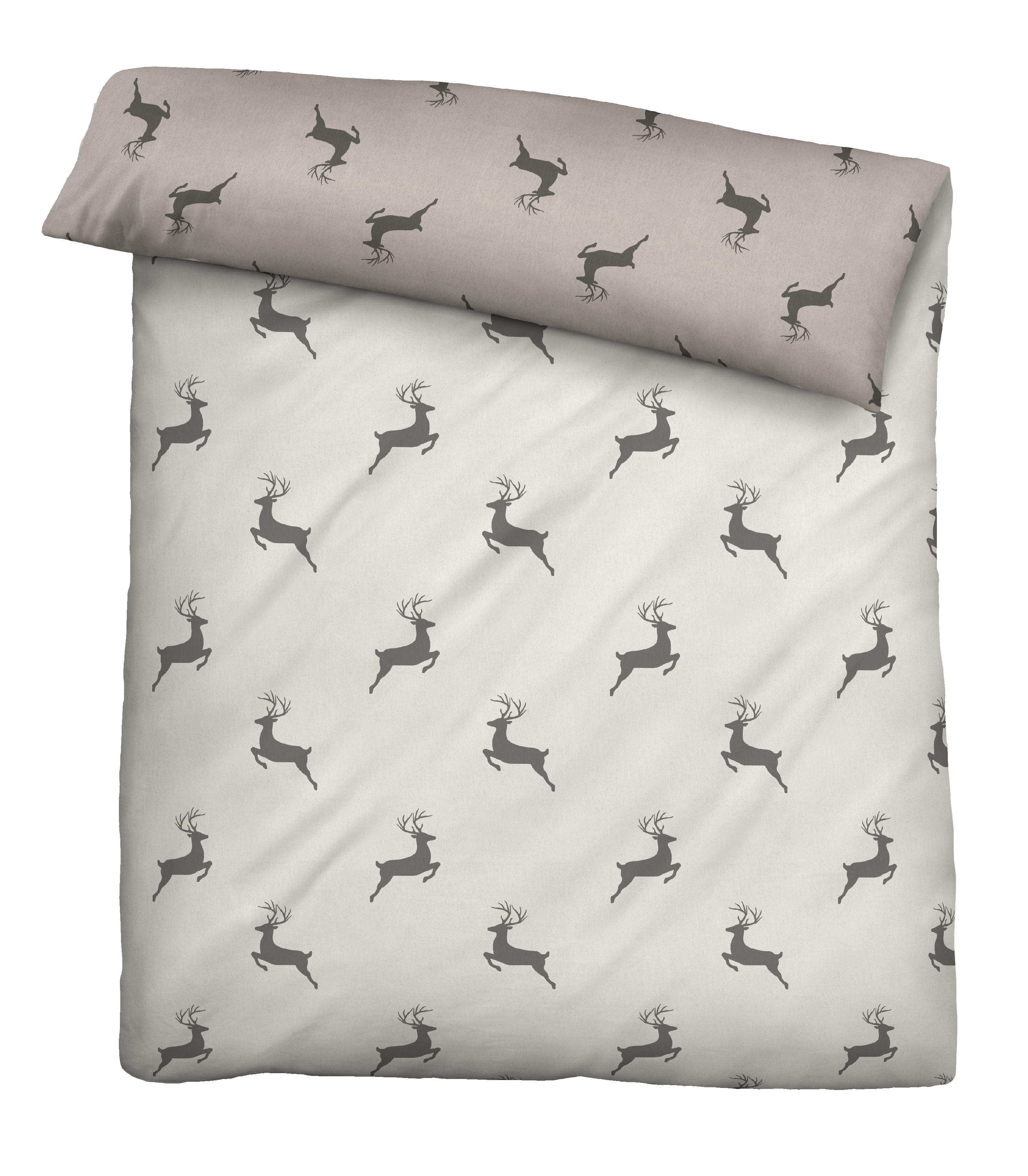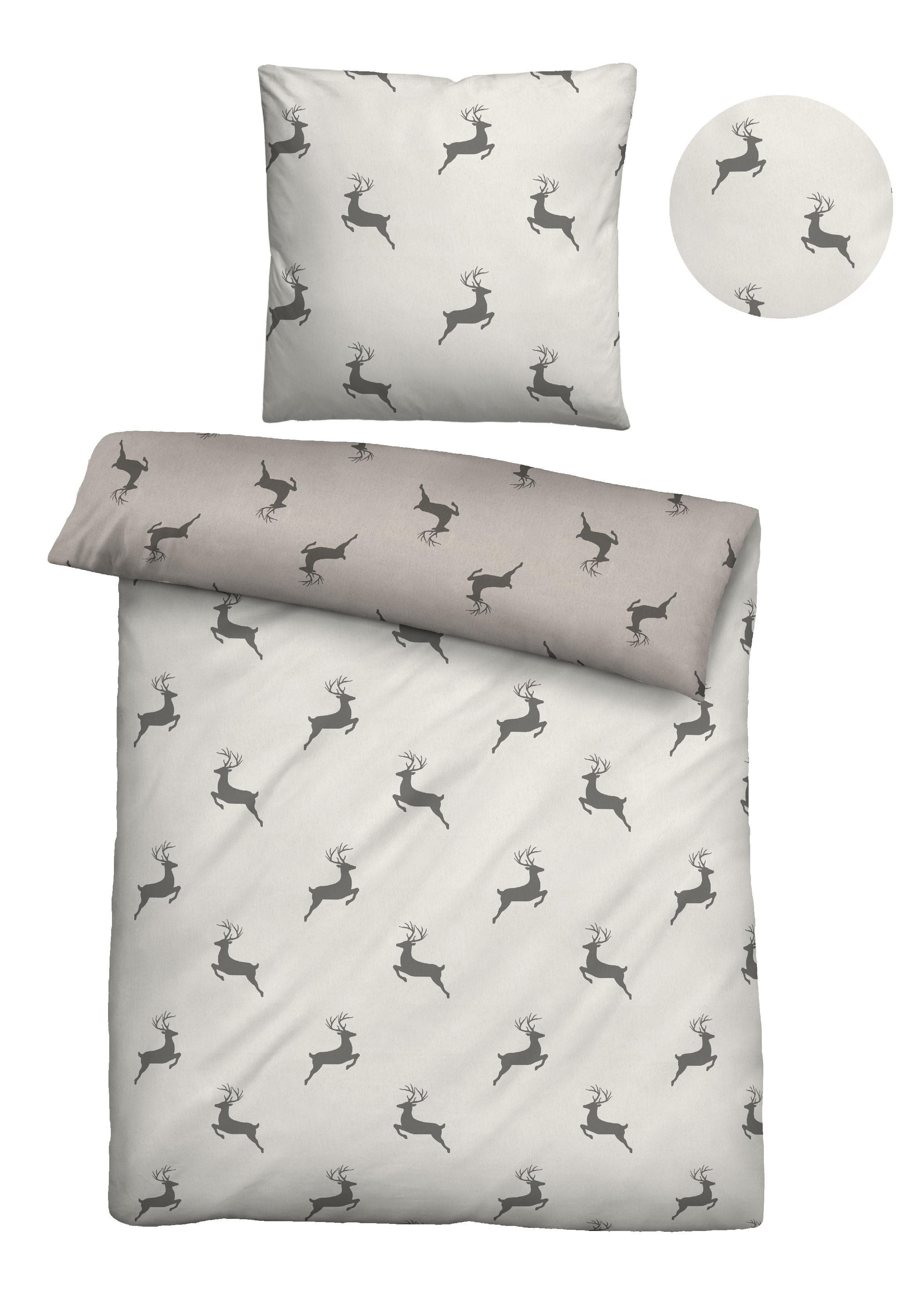 Eigenschaften "Biberna Melange-Flanell Bettwäsche Hirsche klein, Größe 1x 135x200 cm + 1x 80x80 cm, kitt"