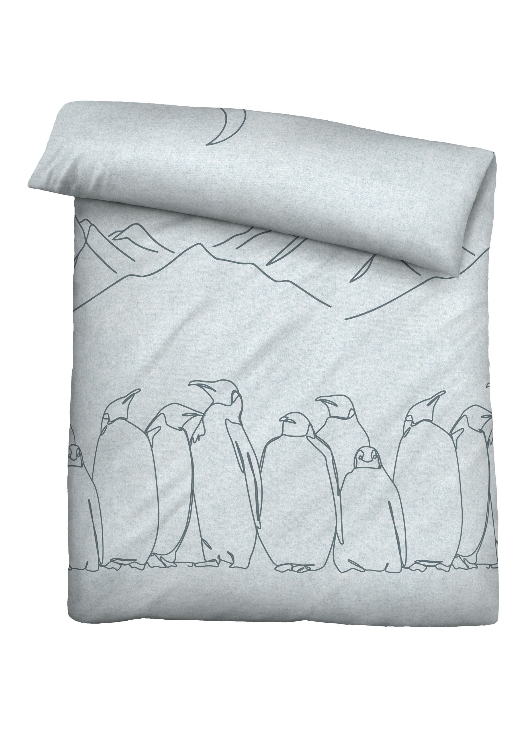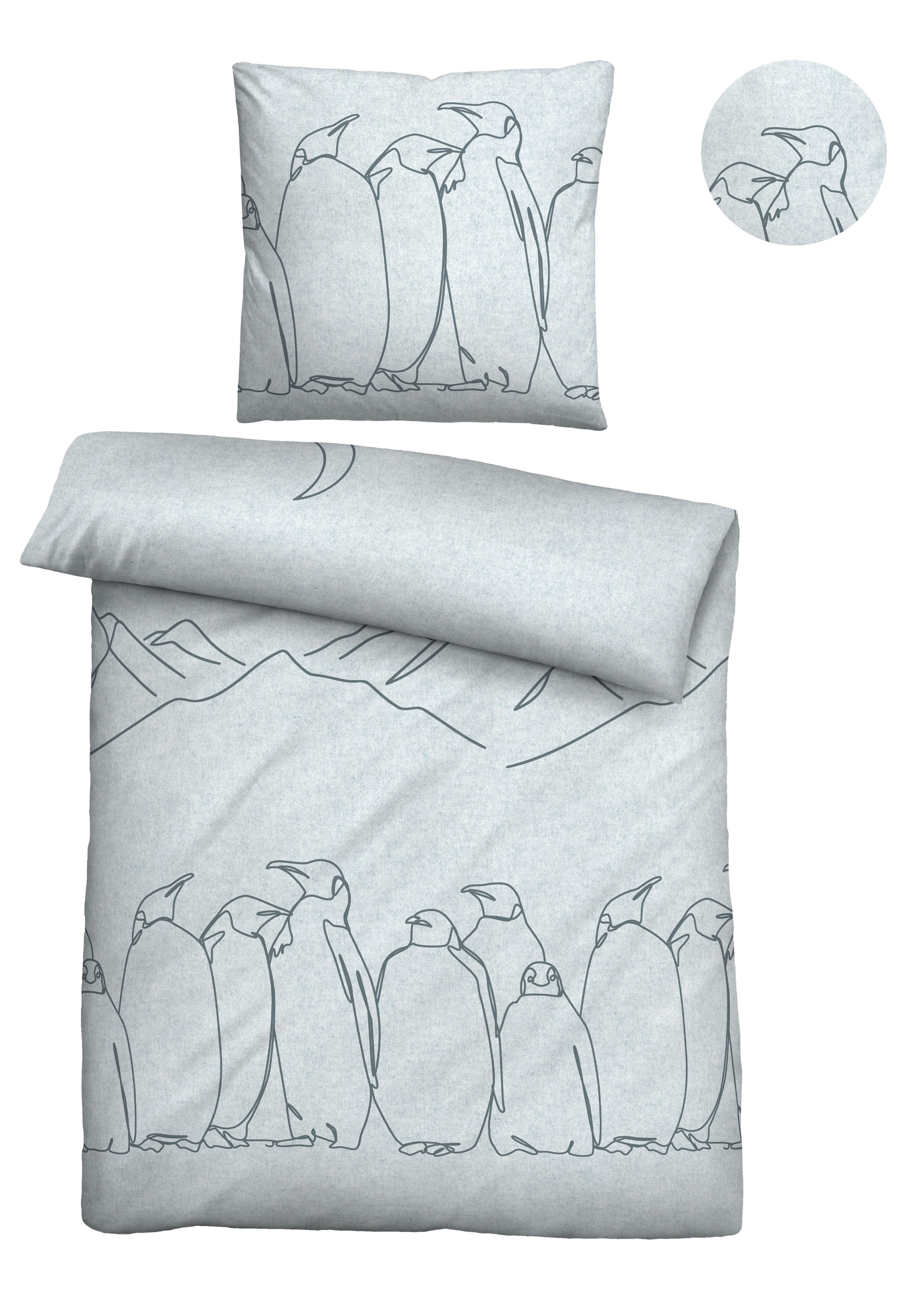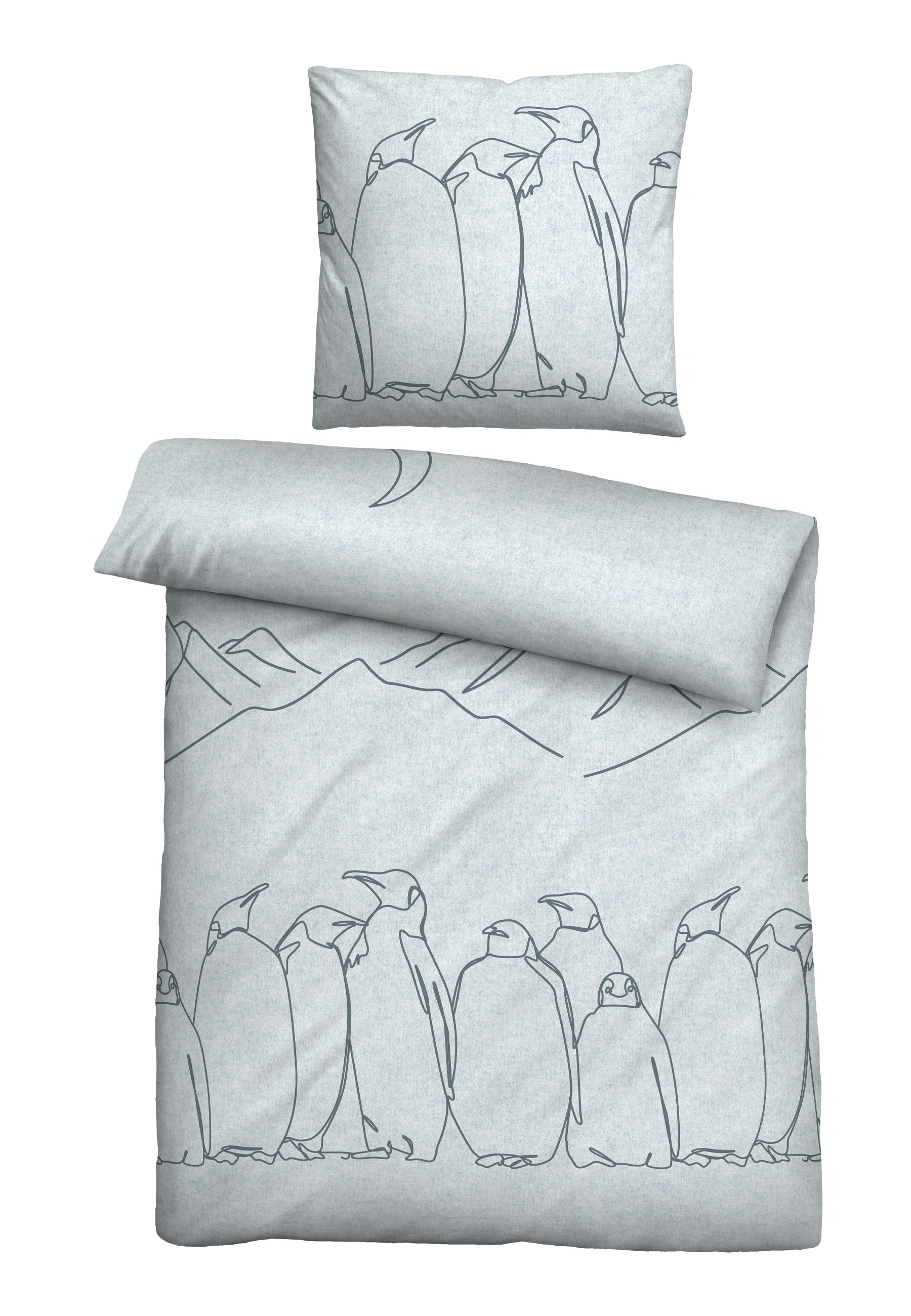 Eigenschaften "Biberna Melange Flanell-Bettwäsche Pinguin, Größe 135x200 cm, ciel"