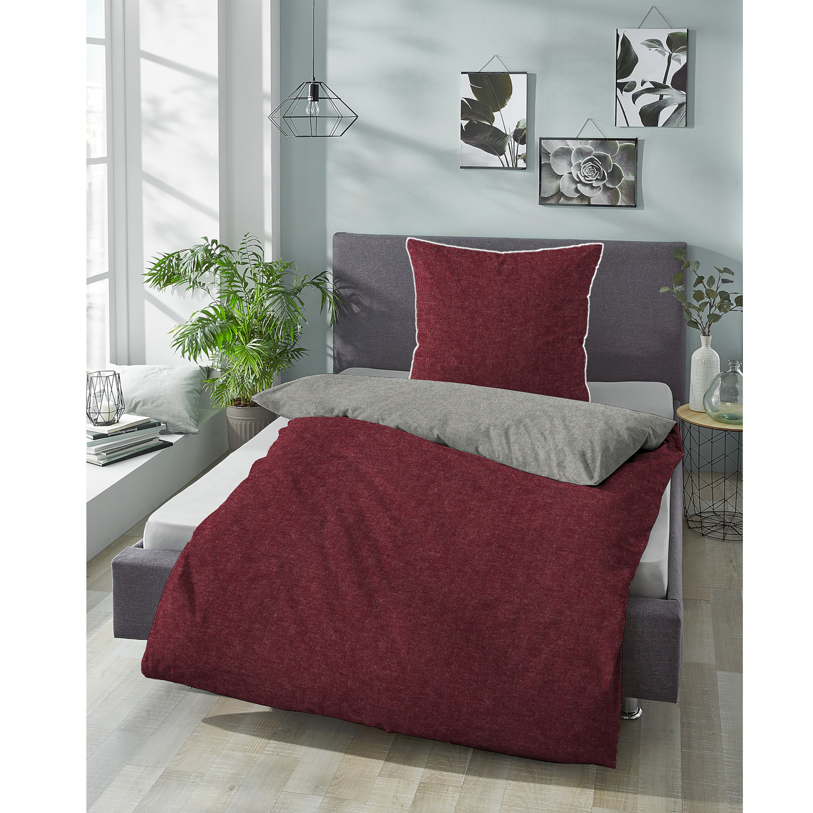 Eigenschaften "Biberna Melange Flanell-Wendebettwäsche 0840500-546, Größe 135x200 cm, burgunder"