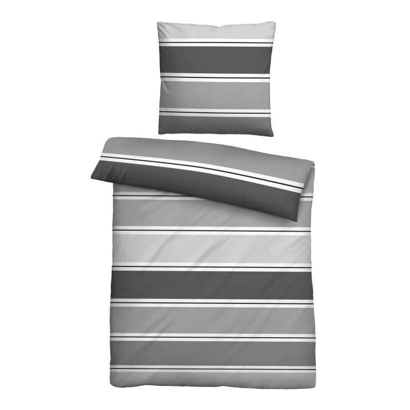 Biberna Seersucker Bettwäsche Querbalken, 135 x 200 cm + 80 x 80 cm, titanium