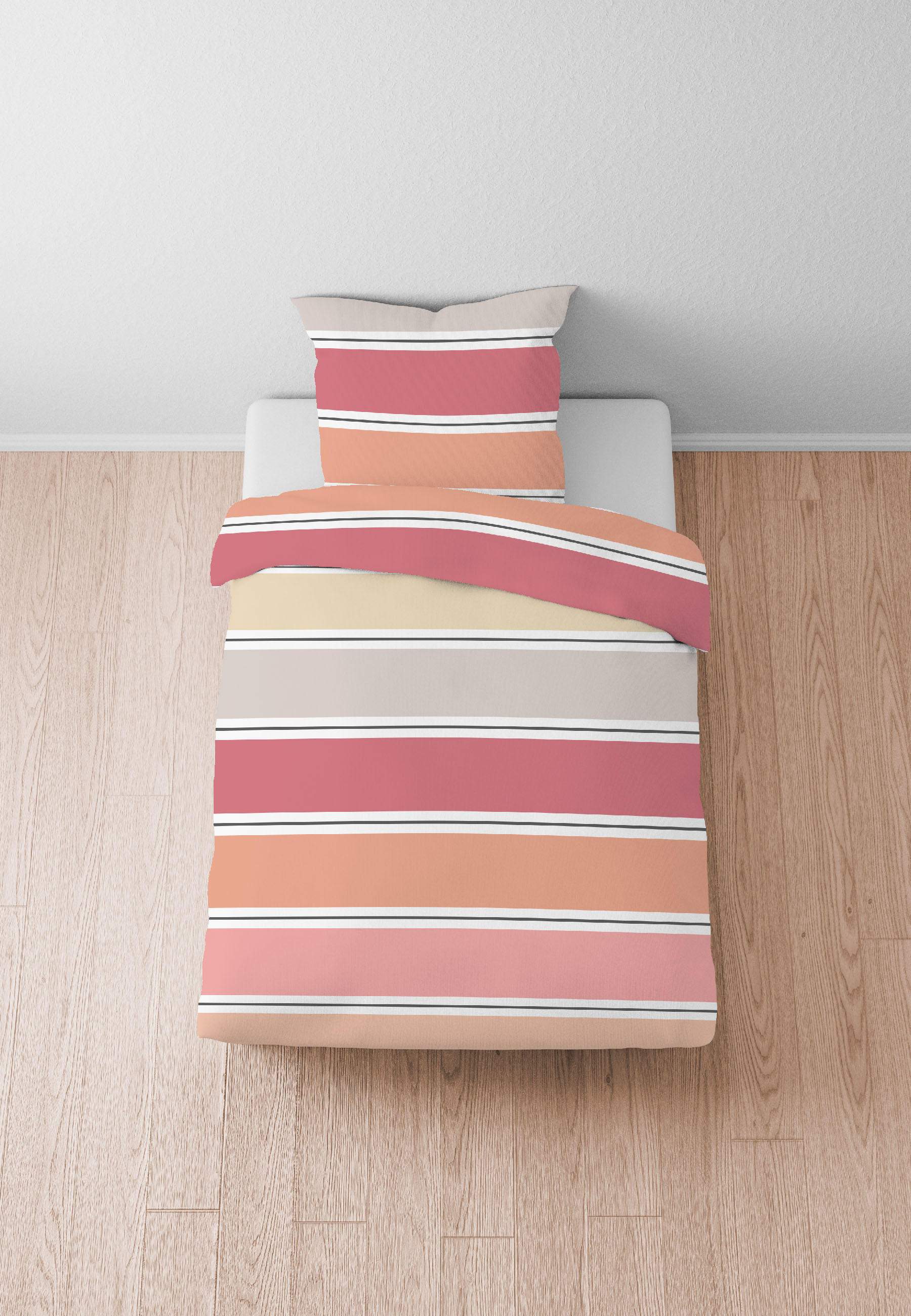 Das Angebot besteht aus einem Bettbezug und einem Kissenbezug. Die Farben können aufgrund unterschiedlicher Bildschirmeinstellungen abweichen. Ohne andere abgebildete Gegenstände, Dekoration oder Möbel/Bett.