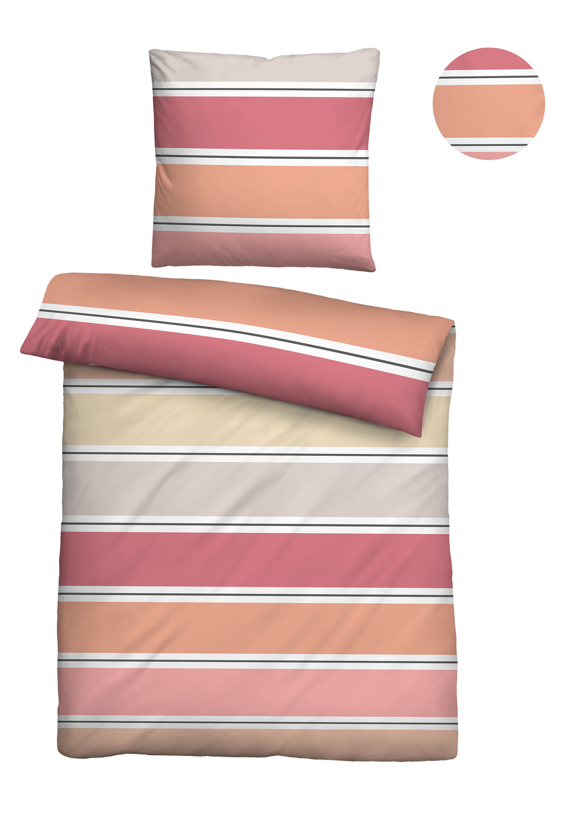 Eigenschaften "Biberna Seersucker Bettwäsche Querbalken, 155 x 220 cm + 80 x 80 cm, koralle"