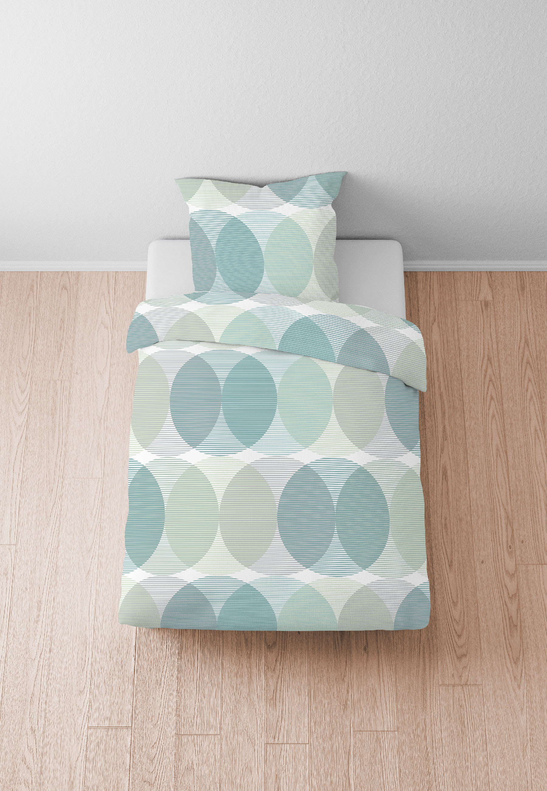 Produktinformationen "Biberna Tencel Bettwäsche Kreise, 135 x 200 cm + 80 x 80 cm, aqua"