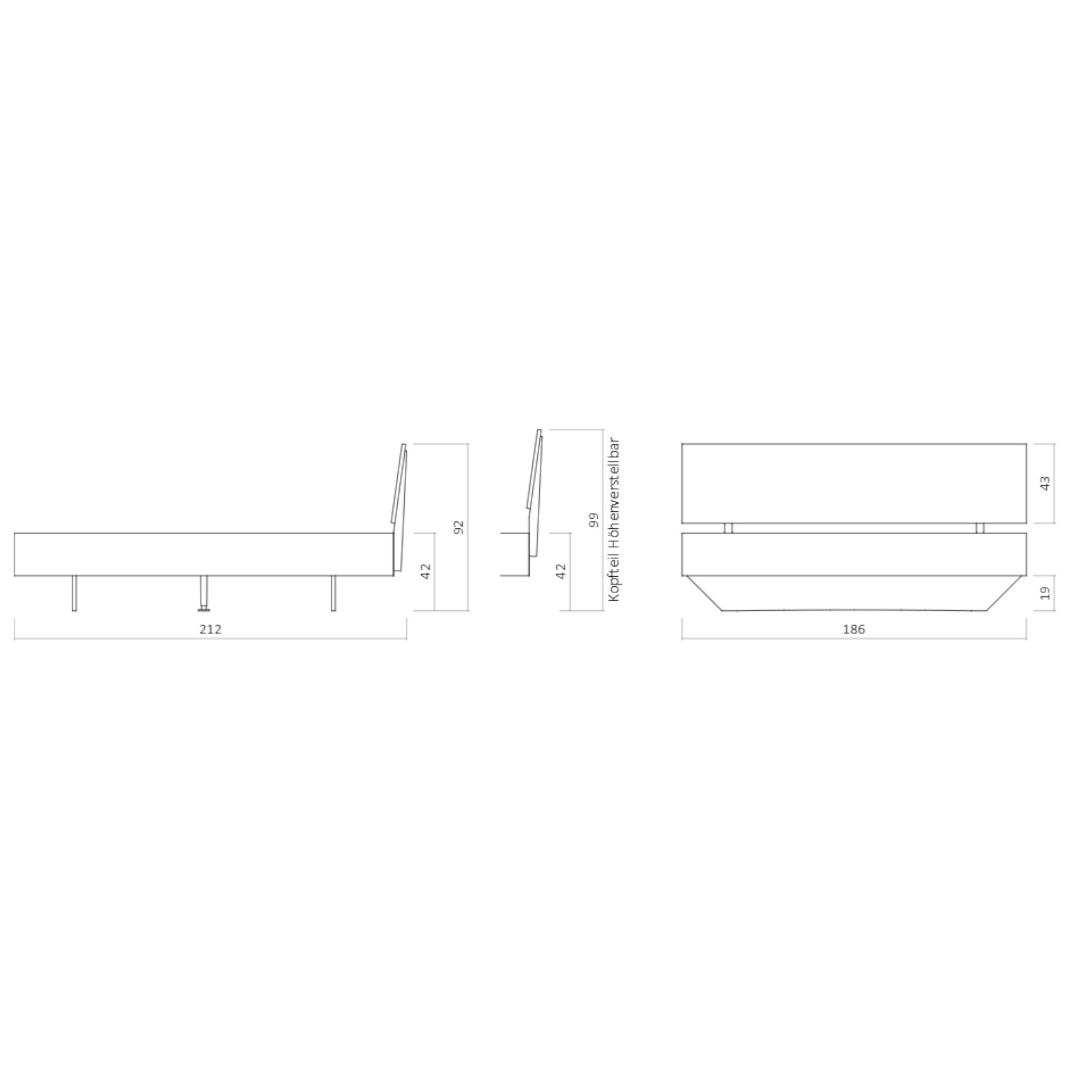 Rahmen durchgehende Lamelle, incl. Kopfteil, Füße Schwebe Optik