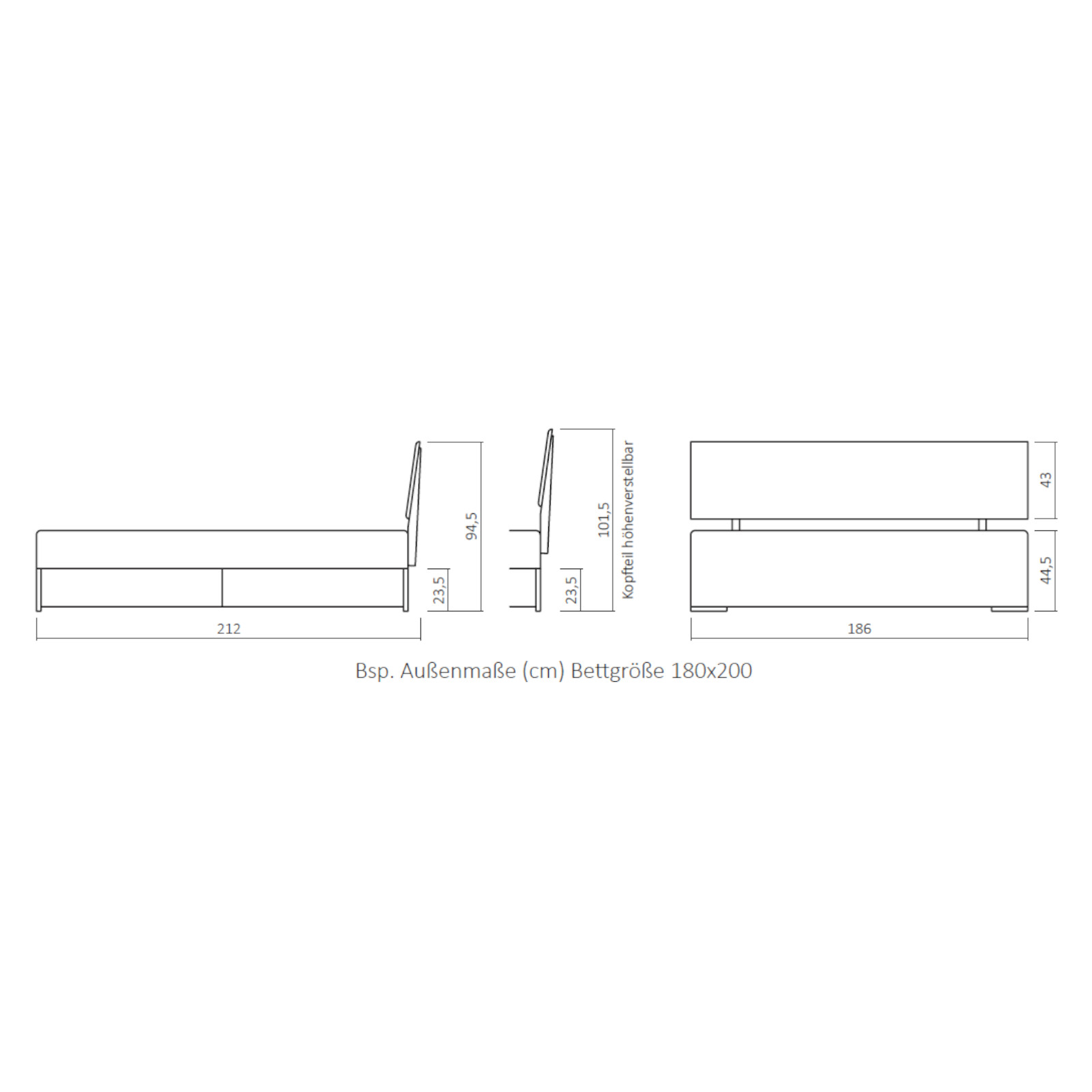 Höhe Bettseiten: ca. 21 cm