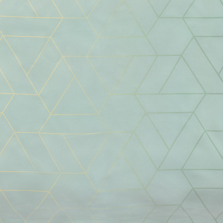 Das geometrische Würfeldesign in Ton-in-Ton-Optik verleiht dem Stoff eine dezente Struktur, während das sanfte Mintgrün eine beruhigende und freundliche Atmosphäre schafft – ideal für alle, die klare Formen und subtile Farbnuancen bevorzugen.