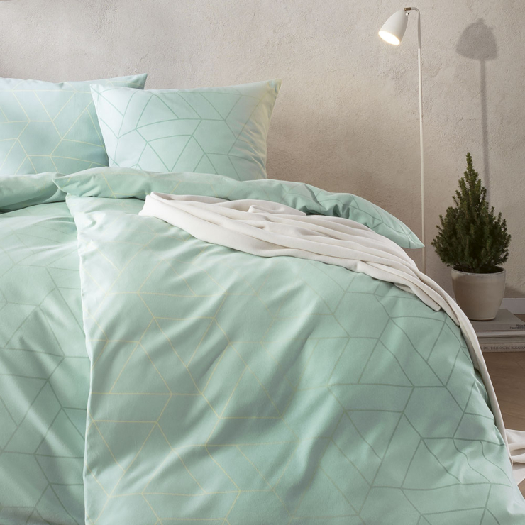 Die Bettwäsche Andriano in der Farbe Mint bringt frische Eleganz und moderne Schlichtheit in dein Schlafzimmer