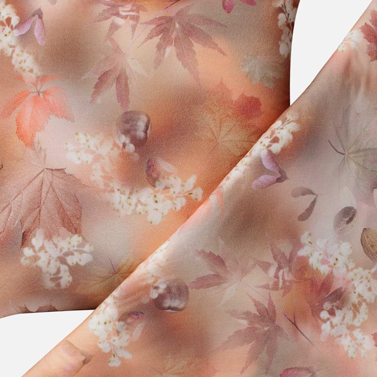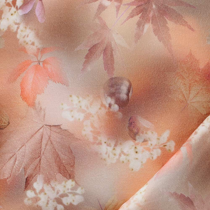 Ihr bernsteinfarbener Grundton strahlt wohltuende Wärme aus und fügt sich harmonisch in jedes Schlafzimmer ein. Ein sanft gezeichnetes Laubmotiv legt sich wie ein feiner Schleier über die warme Basisfarbe und unterstreicht den natürlichen, gemütlichen Charakter des Designs.