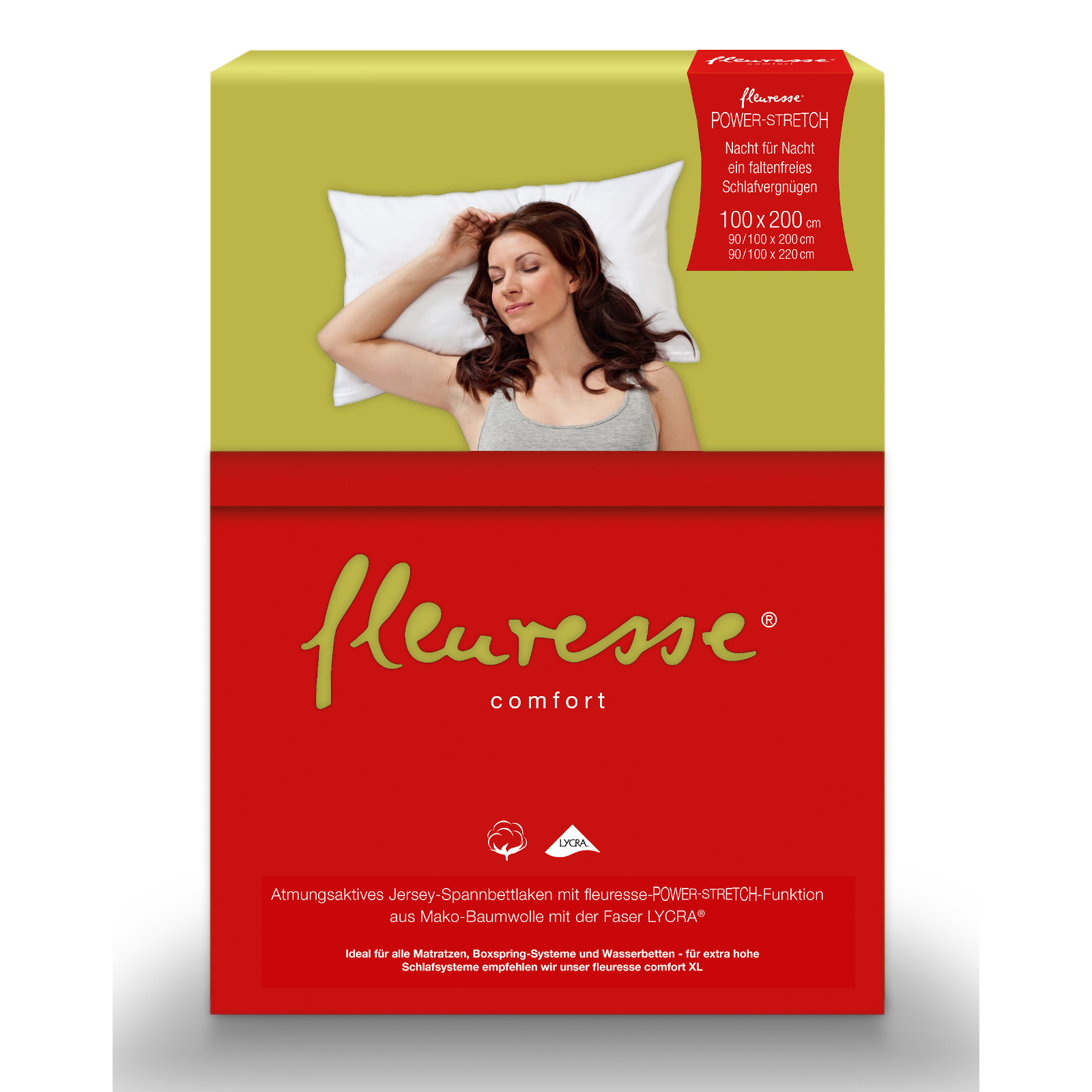 fleuresse-comfort - das exklusive Premium Comfort Spannlaken mit fleuresse POWER-STRETCH-Funktion aus Mako-Baumwolle mit der Faser LYCRA ®.