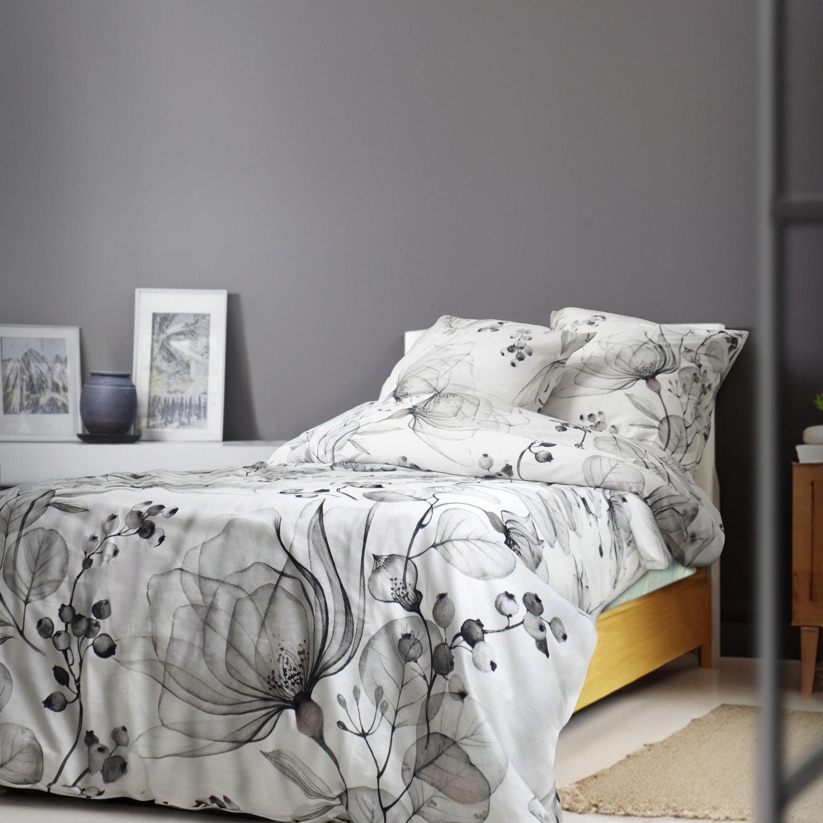 Die Bettwäsche ist feuchtigkeitsausgleichend, strapazierfähig und pflegeleicht.