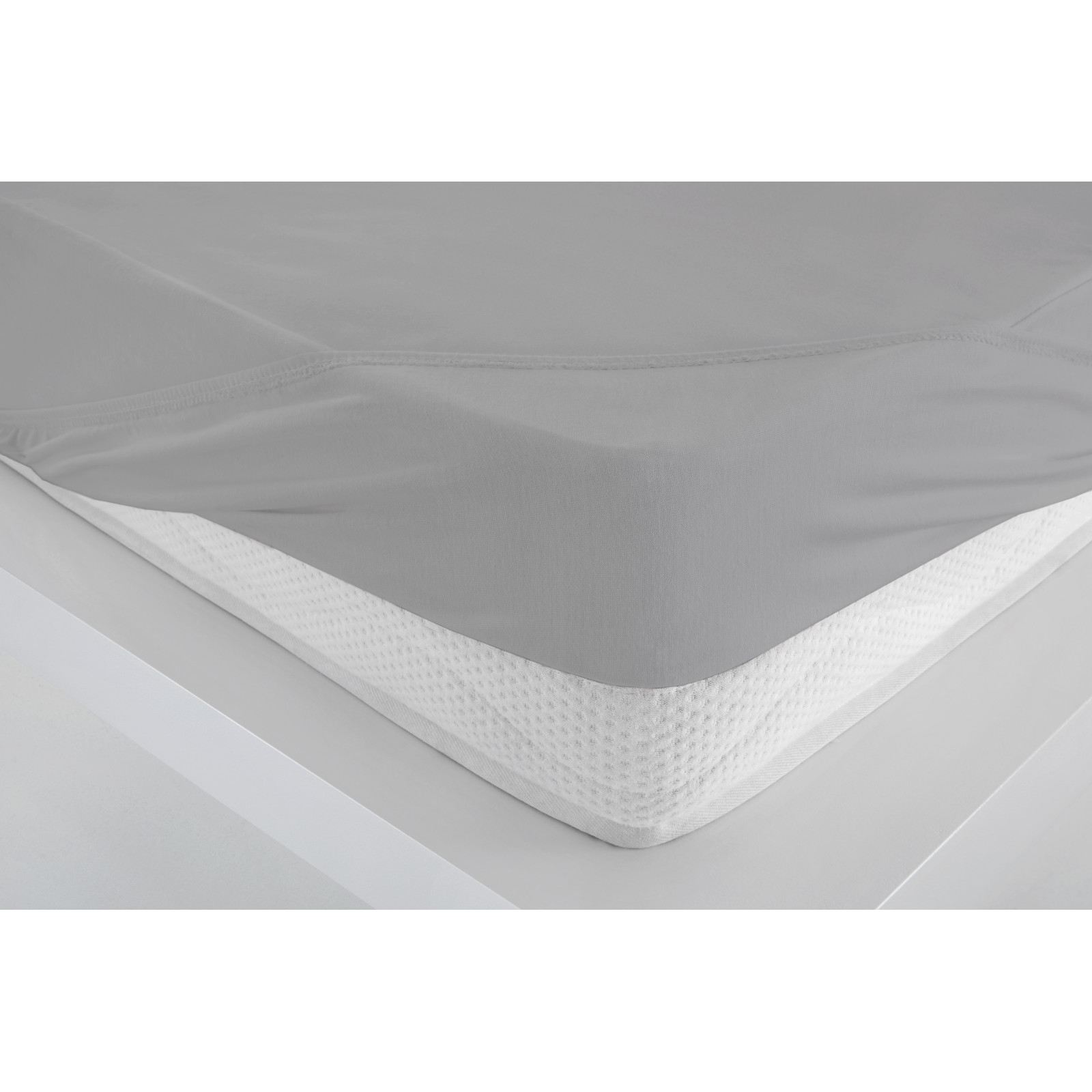 Es ist Jersey-Spannbetttuch und Schutz in Einem-