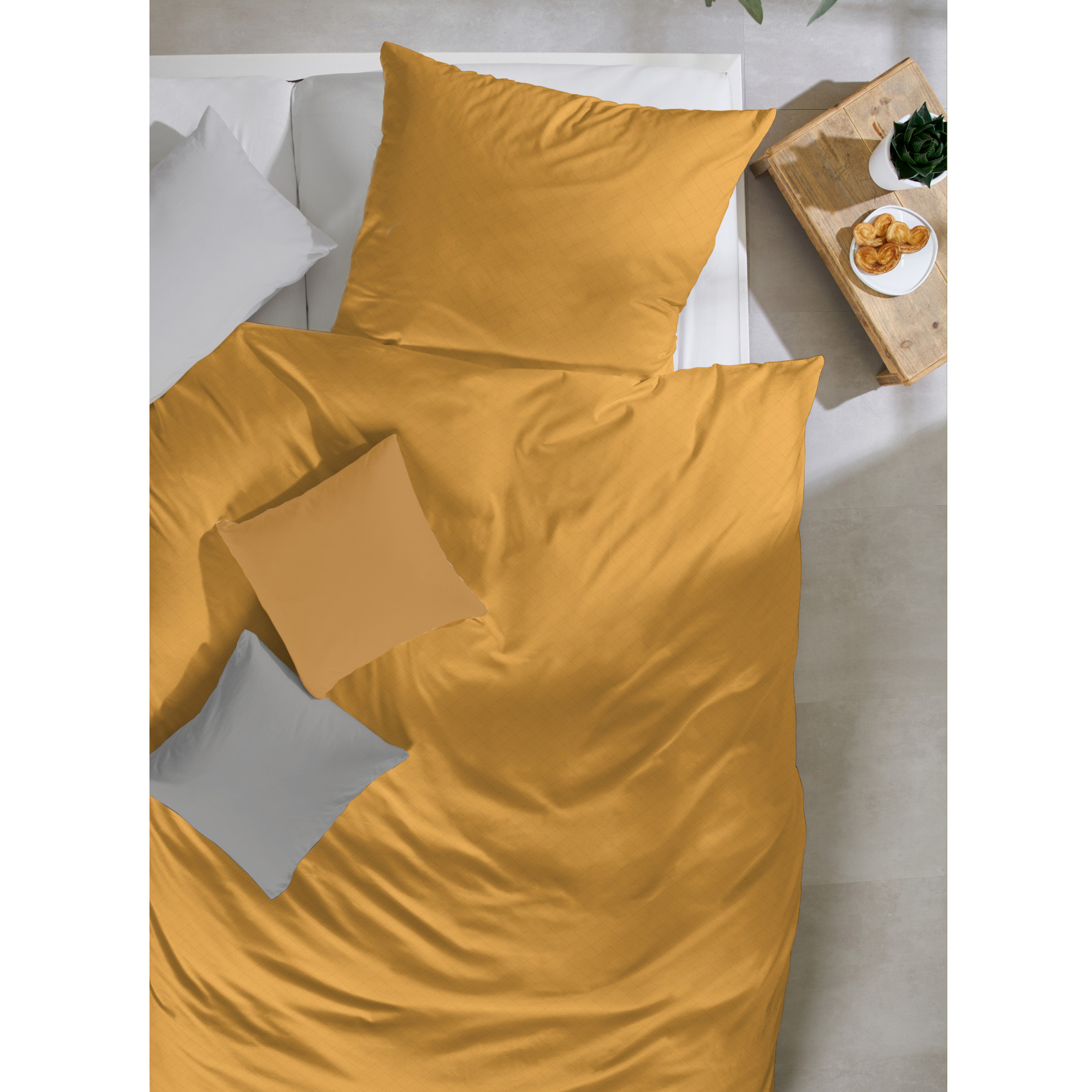 Produktinformationen "Hahn Haustextilien Mako Satin Bettwäsche falsches Uni senf Größe 200x200 cm"