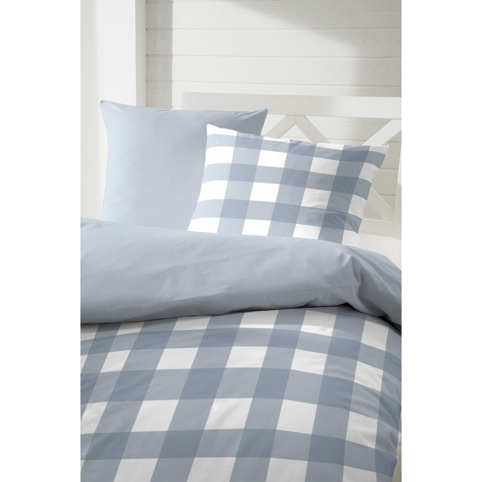 Produktinformationen "Hahn Haustextilien Perkal Bettwäsche blau karo Größe 220x240 cm"