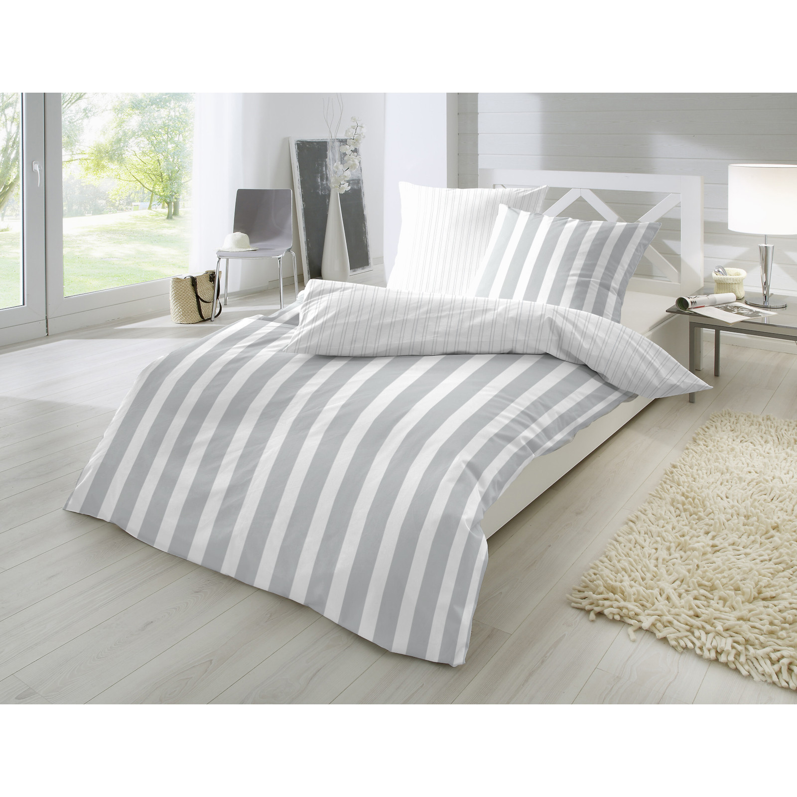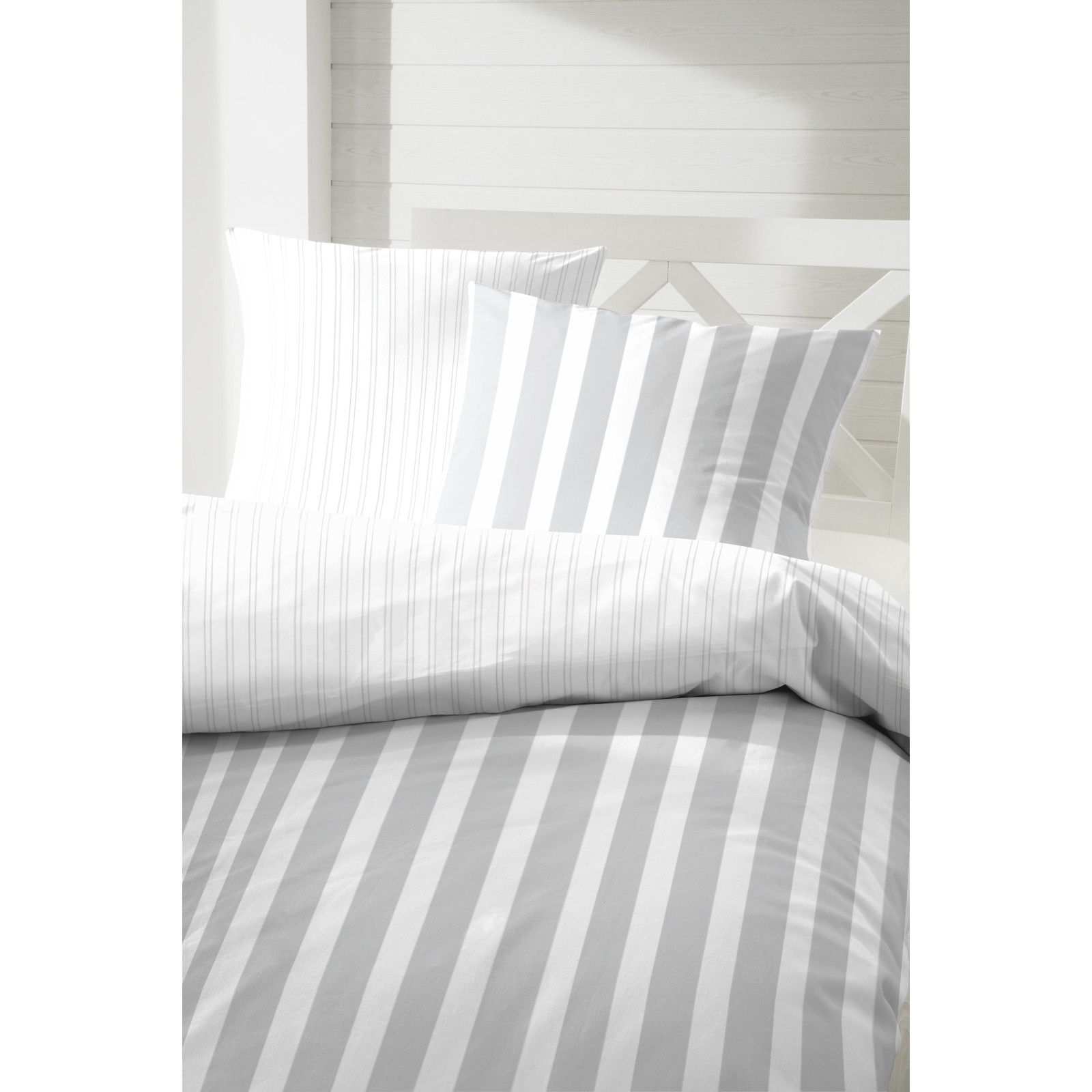 Hahn Haustextilien Perkal Bettwäsche grau gestreift Größe 220x240 cm