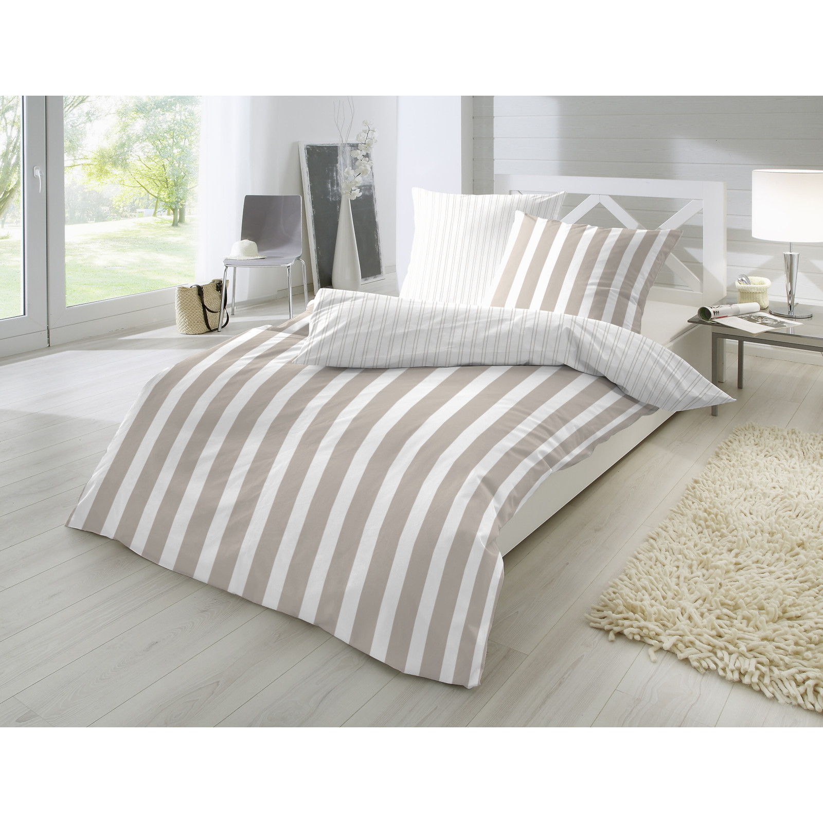 Produktinformationen "Hahn Haustextilien Perkal Bettwäsche taupe gestreift Größe 220x240 cm"