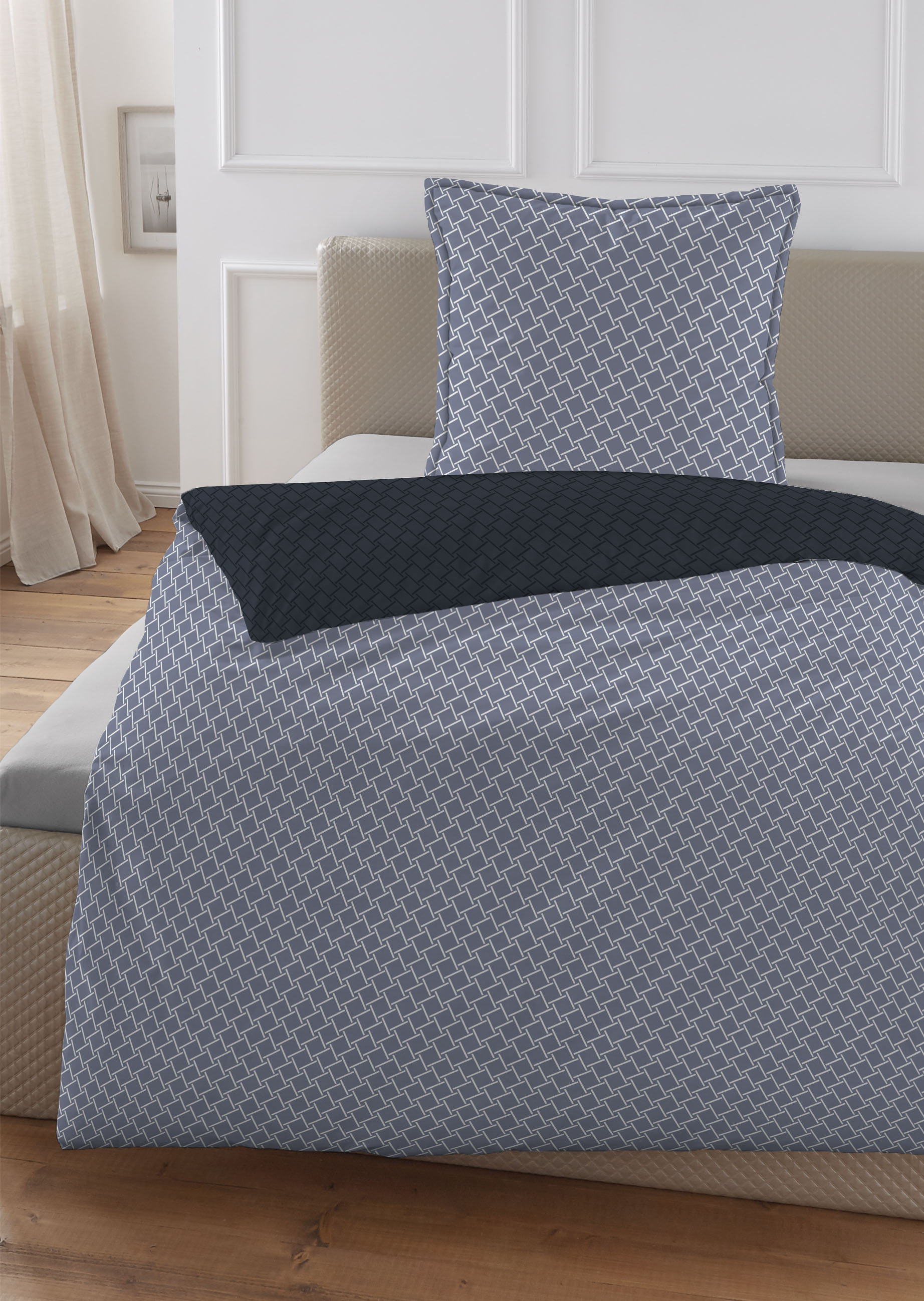 Produktinformationen "Hechter Paris Satin Bettwäsche Geometrie, 155 x 220 cm + 80 x 80 cm, marine"