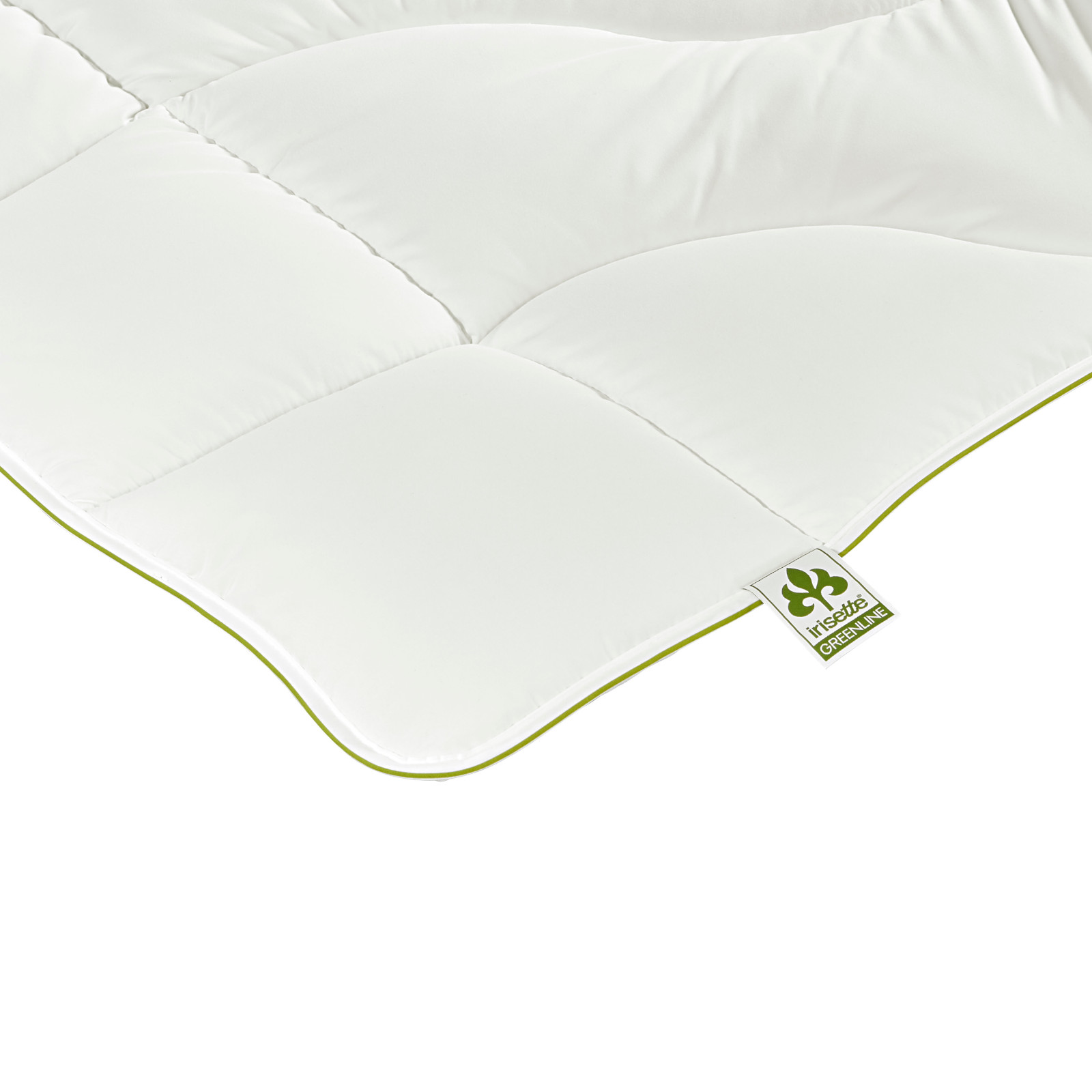 Das Steppbett hat ein Greenline Flaglabel und eine grünes Einfassband.
