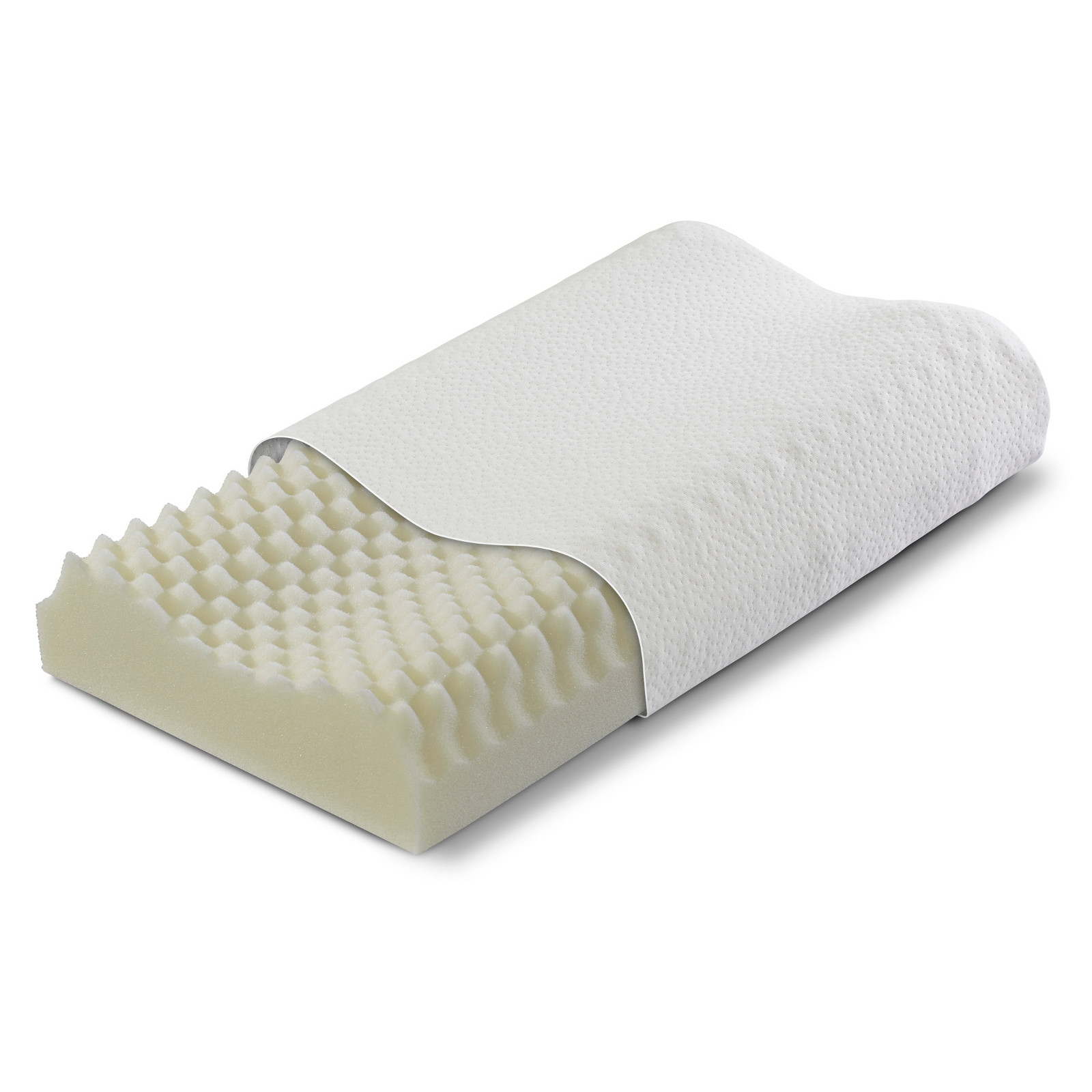 Das Kissen ist ergonomisch der Form der Kopf- und Nackenpartie nachempfunden, unterstützt diesen Bereich und kann Muskelverspannungen entgegenwirken. Es ist für Rücken- und Seitenschläfer geeignet.