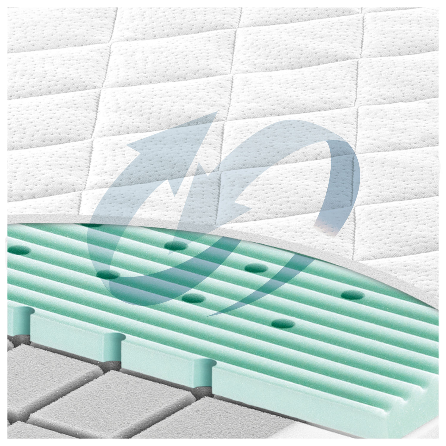 Der hochwertige Schaumkern mit vertikalen Ventilationskanälen sorgt für ein perfektes Schlafklima.
